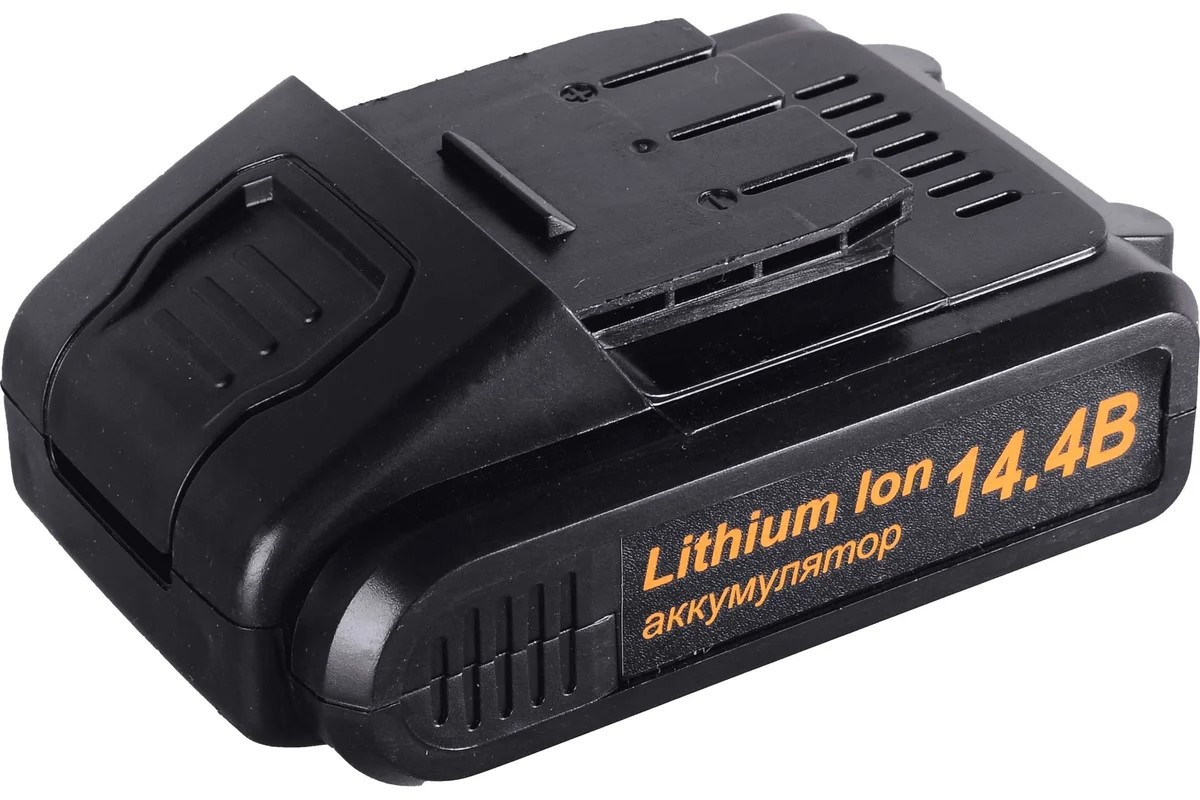Литий-ионный аккумулятор Вихрь АКБ14Л1 KP для шуруповерта Вихрь ДА-14,4Л-2К типа слайдер. Легко и быстро устанавливается на шуруповерт с помощью кнопки отсоединения. Напряжение аккумулятора - 14.4 В, емкость составляет 2 А*ч