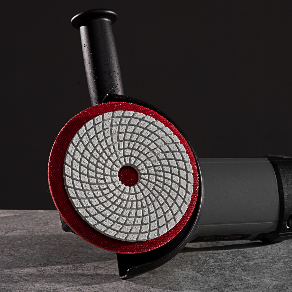 Алмазный гибкий шлифовальный круг Matrix 73512 диаметром 100 мм, с зернистостью P 1500, 5 шт. в упаковке, предназначен для мокрого шлифования и используется при проведении строительных, отделочных и художественных работ. Абразив зернистостью P 1500 позволяет проводить финишную обработку — полировать гранитные, каменные, керамогранитные и мраморные поверхности. Рабочая часть выполнена из белого термопластика с алмазным напылением и подходит для использования на цветных, преимущественно белых, материалах. Гибкая основа круга облегчает шлифовку рельефных элементов. Круг используется на УШМ с установленной опорной тарелкой для АГШК.