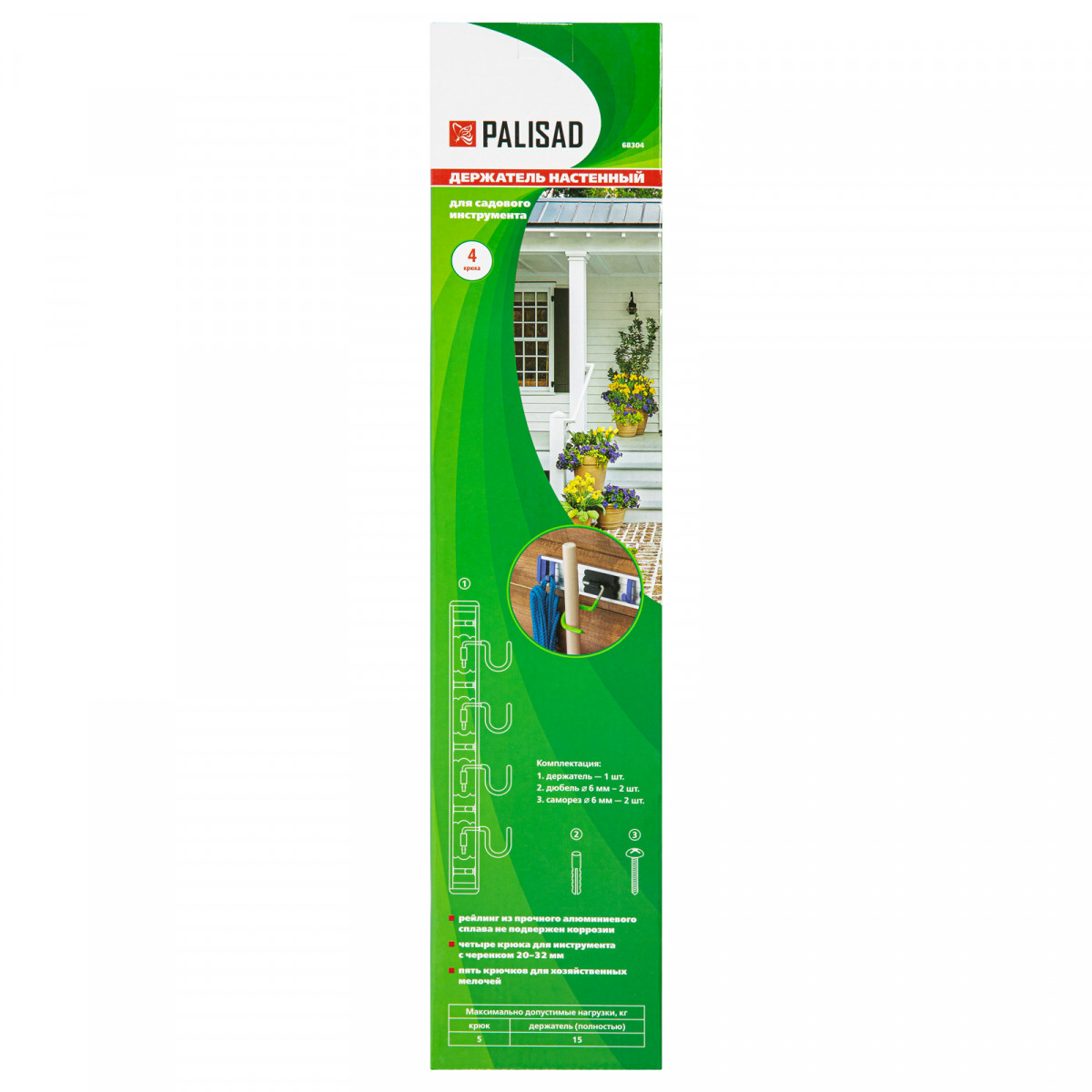Алюминиевый настенный держатель для садового инструмента, 4 крюка, Palisad