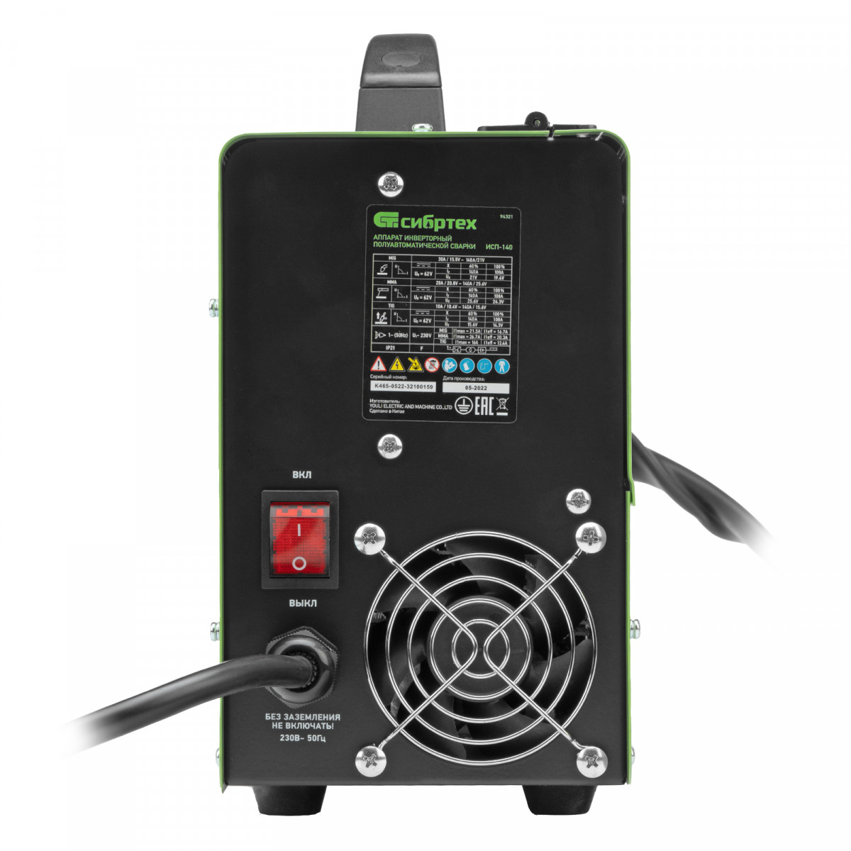 Инверторный аппарат полуавтоматической сварки Сибртех ИСП-140 94321 работает с максимальным сварочным током 140 А, время продолжительности включения составляет 60%. Аппарат позволяет работать в режимах MMA (сварка покрытым электродом диаметром до 4 мм), сварки флюсовой проволокой FCAW диаметром 0,8/0,9 мм без подачи газа и в режиме аргонодуговой сварки неплавящимся вольфрамовым электродом LIFT TIG (горелка в комплект не входит). Применение передовой инверторной технологии IGBT обеспечивает стабильный постоянный сварочный ток на выходе. Аппарат подходит для профессионального использования.