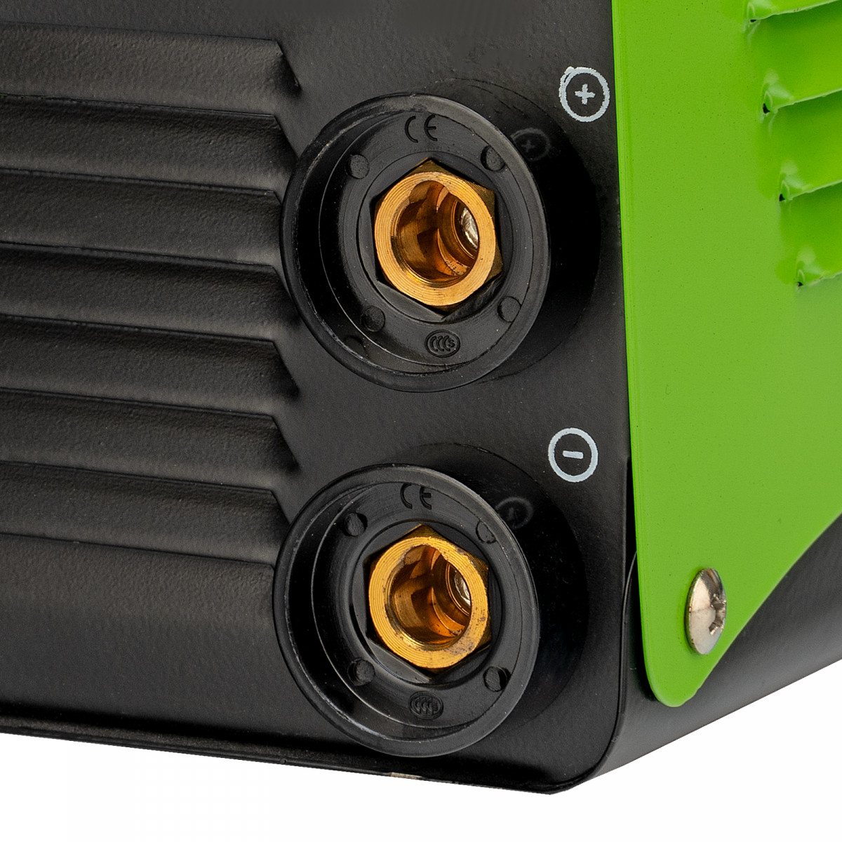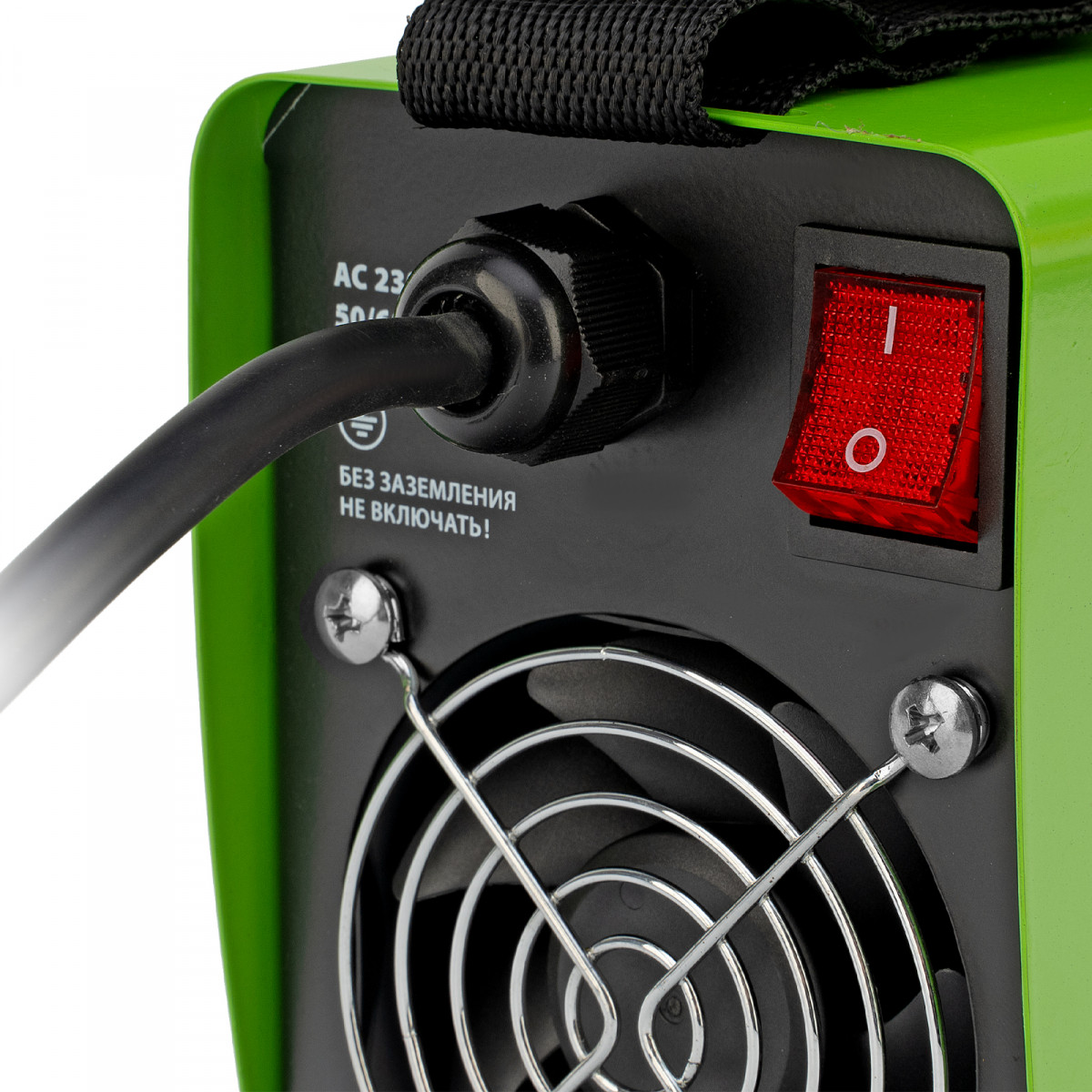 • Точная настройка — поворотный регулятор позволяет плавно изменять силу сварочного тока для достижения оптимального результата.