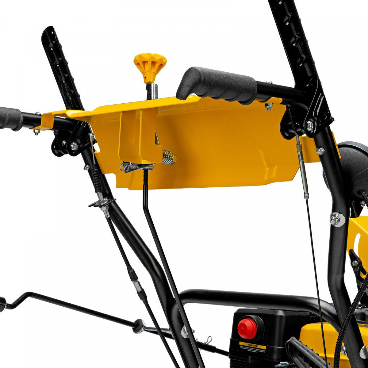 - Надежная конструкция — высокая стальная панель придает жесткость раме и повышает комфорт использования бензинового снегоуборщика.
