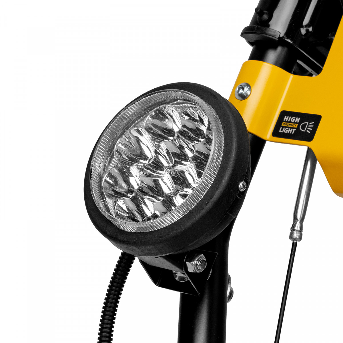 - Комфортная работа — рычаг поворота желоба позволяет легко выбрать желаемое направление выброса снега, а яркая LED-фара позволяет работать в условиях плохой видимости.
