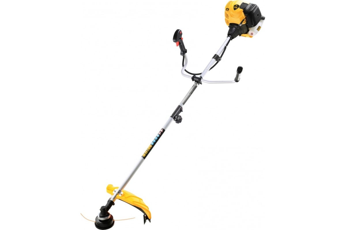 Бензиновый триммер Denzel DTL-33S 96262 применяется для скашивания травы на приусадебном участке.Ремень плечевой с защитой бедра и велосипедная рукоятка способствуют равномерному распределению нагрузки на пользователя для снижения усталости при работе.Мощный двухтактный двигатель уменьшает вес конструкции, но обеспечивает качественную обработку.Безопасность. На рукоятке предусмотрена блокировка газа для защиты от непреднамеренного запуска двигателя.