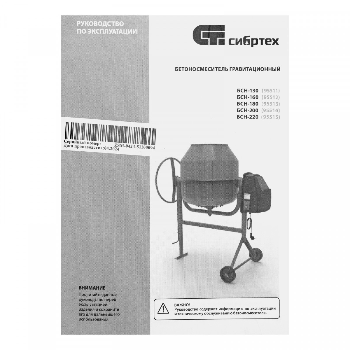 Бетоносмеситель БСН-160, мощность 500 Вт Сибртех