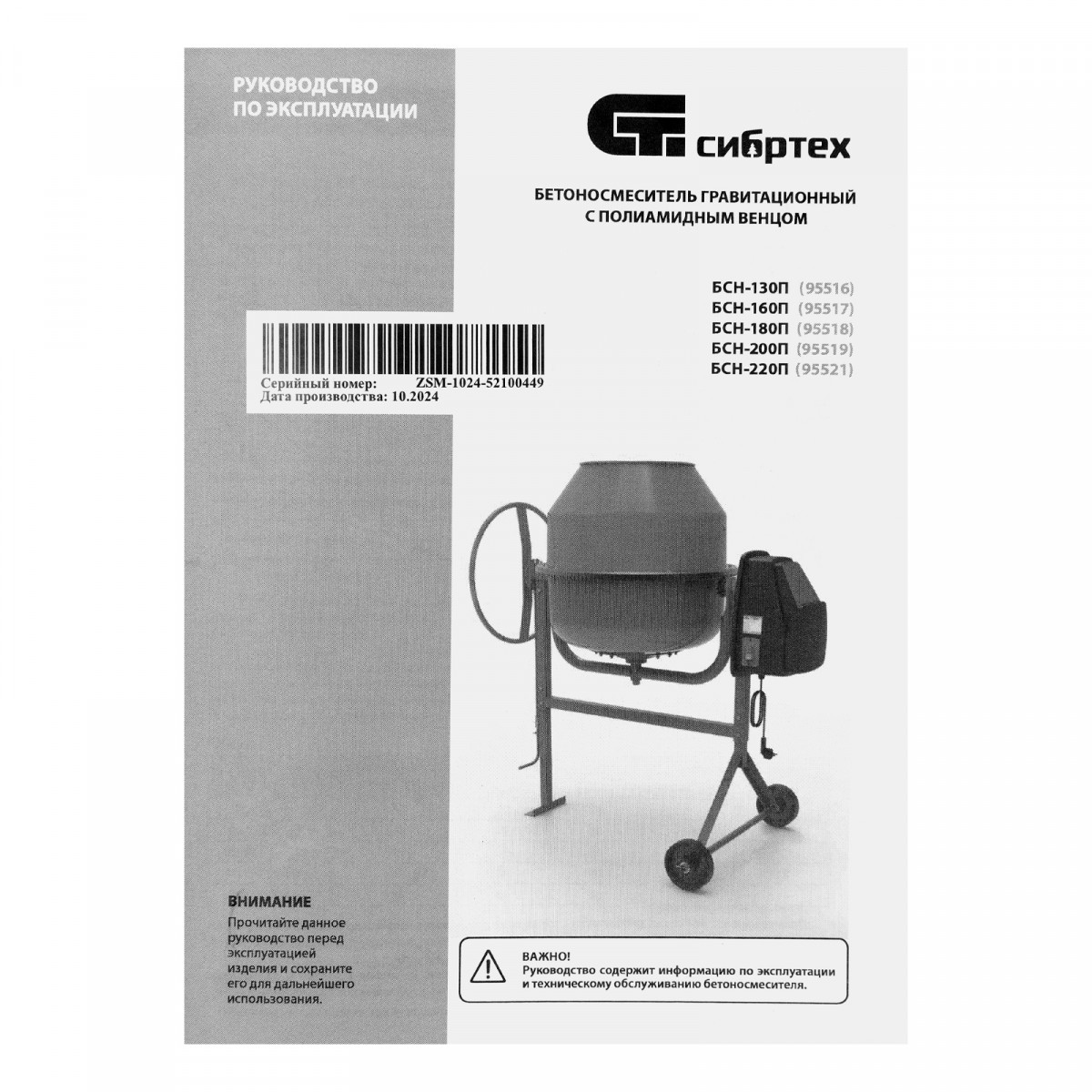 • Электробезопасность — токопроводящие элементы надежно изолированы, бетоносмесителю присвоен класс защиты II.
