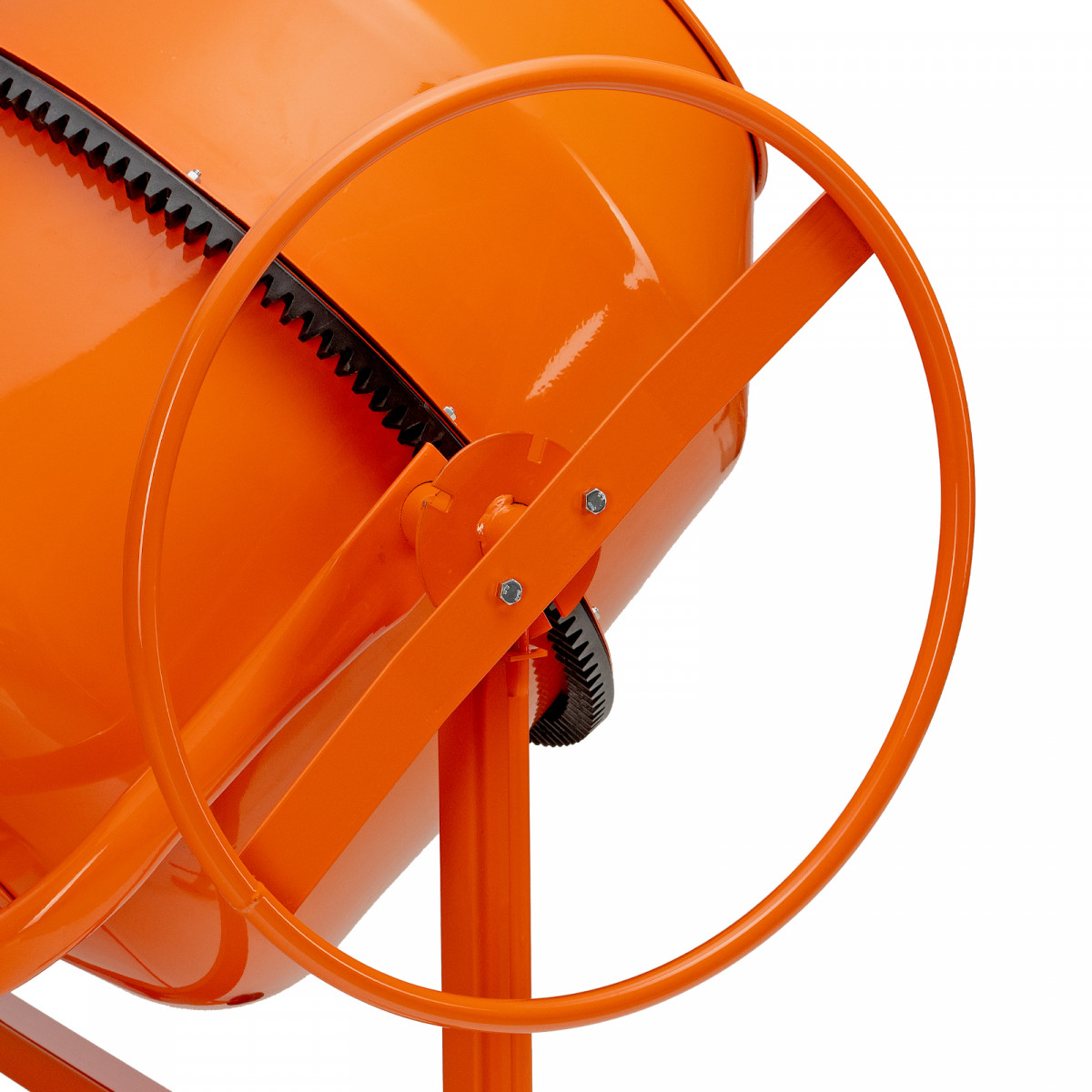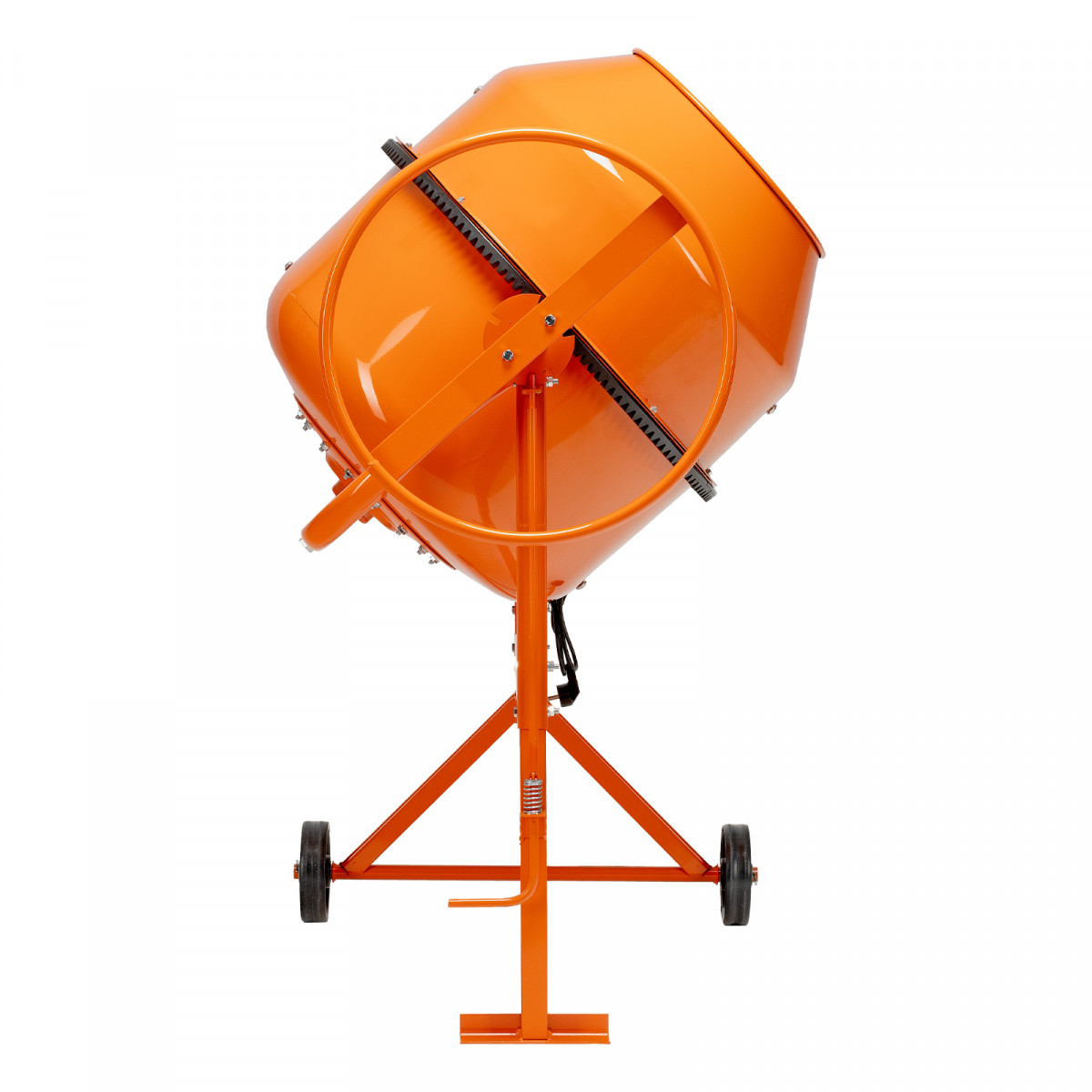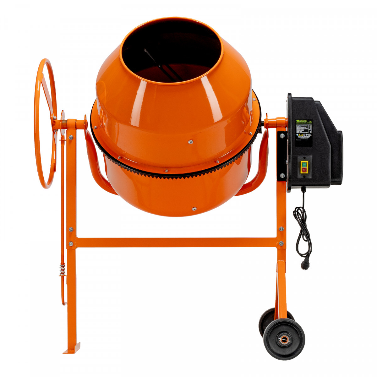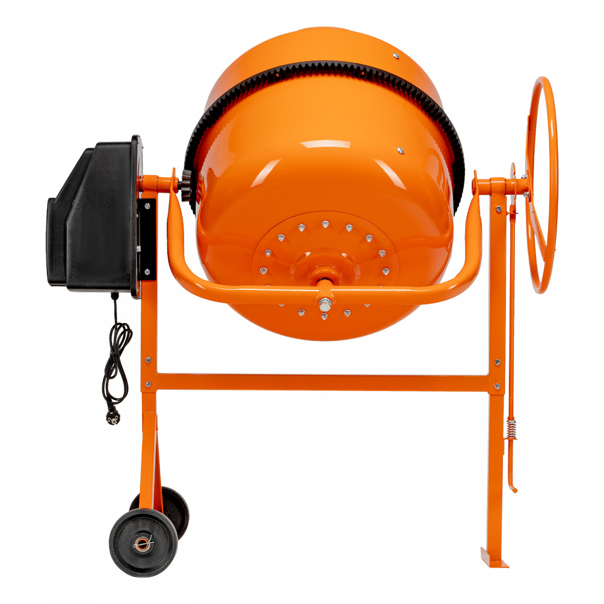 • Удобная загрузка и выгрузка смеси — барабан наклоняется при помощи маховика и легко фиксируется в нужном положении.