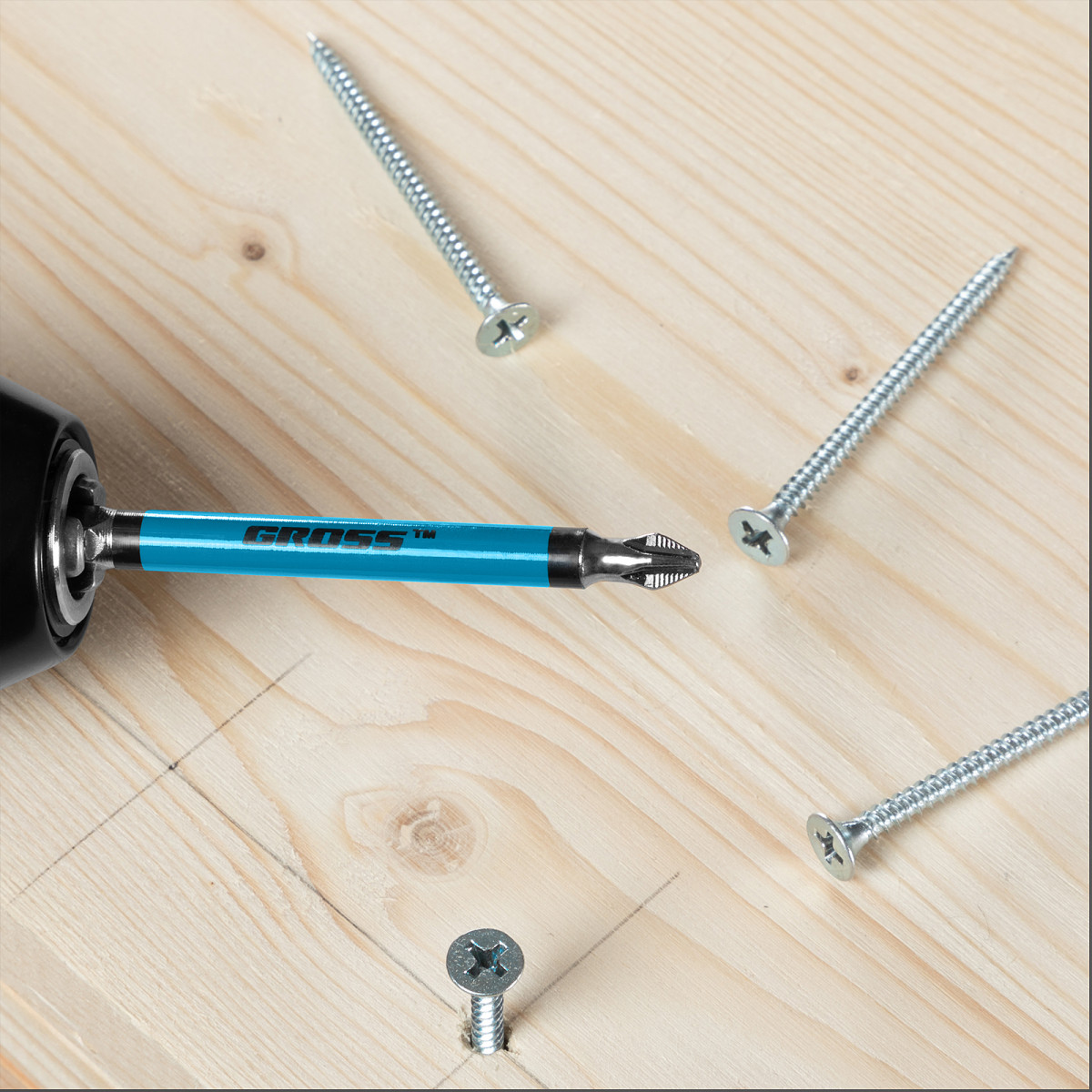 - Износоустойчивость — биты изготовлены из японской легированной стали S2 повышенной прочности и закалены до твердости 54-58 HRC.