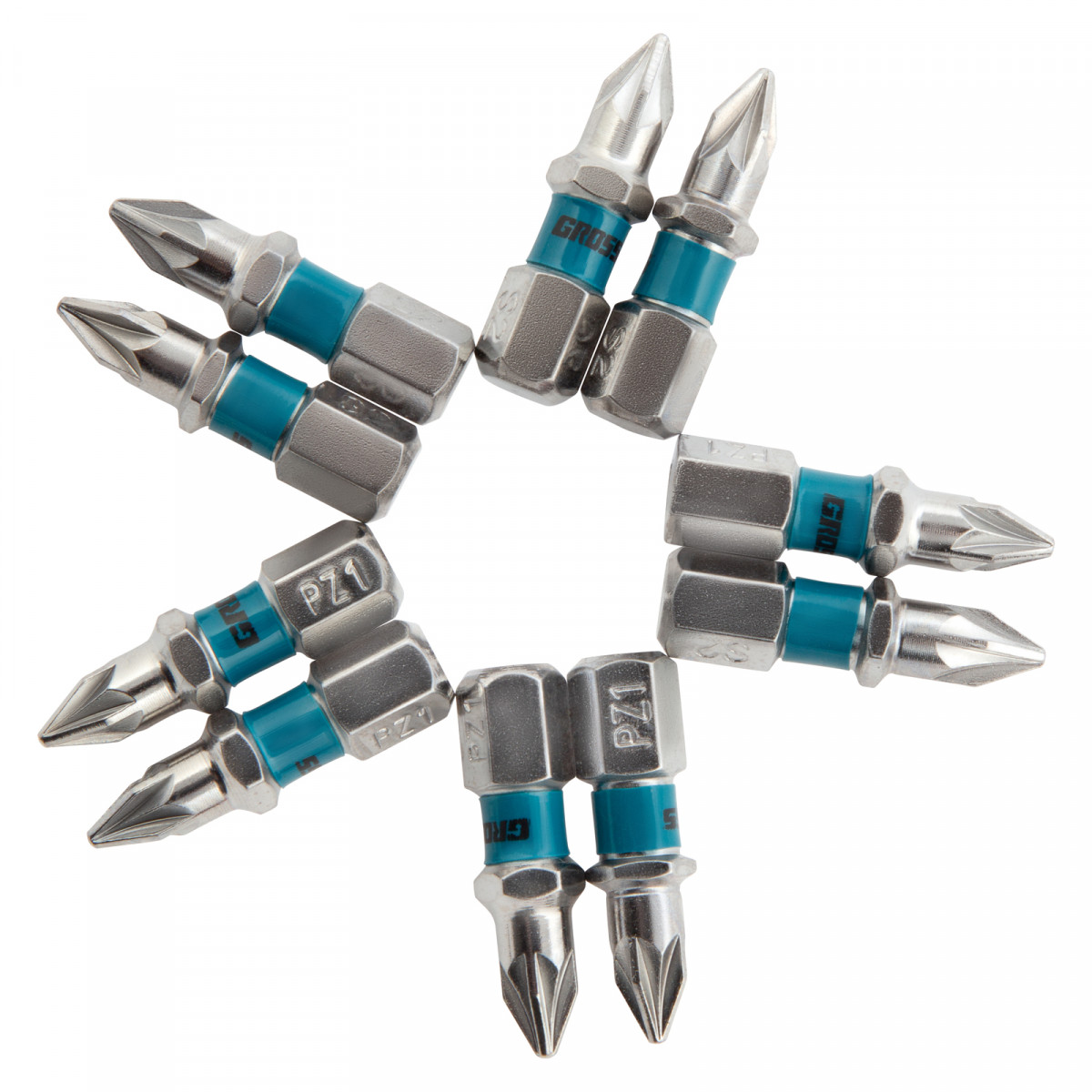 Набор бит Gross 11339 состоит из 10 насадок типоразмера PZ1 и длиной 25 мм, с хвостовиком 1/4 дюйма, изготовленных из стали S2 и предназначенных для шуруповертов. Оснастки служат для монтажа и демонтажа шурупов, саморезов и других резьбовых соединений. Шлиц PZ имеет 4 дополнительных ребра, благодаря чему предотвращается проскальзывание биты в крепеже, повышаются точность и эффективность работ.