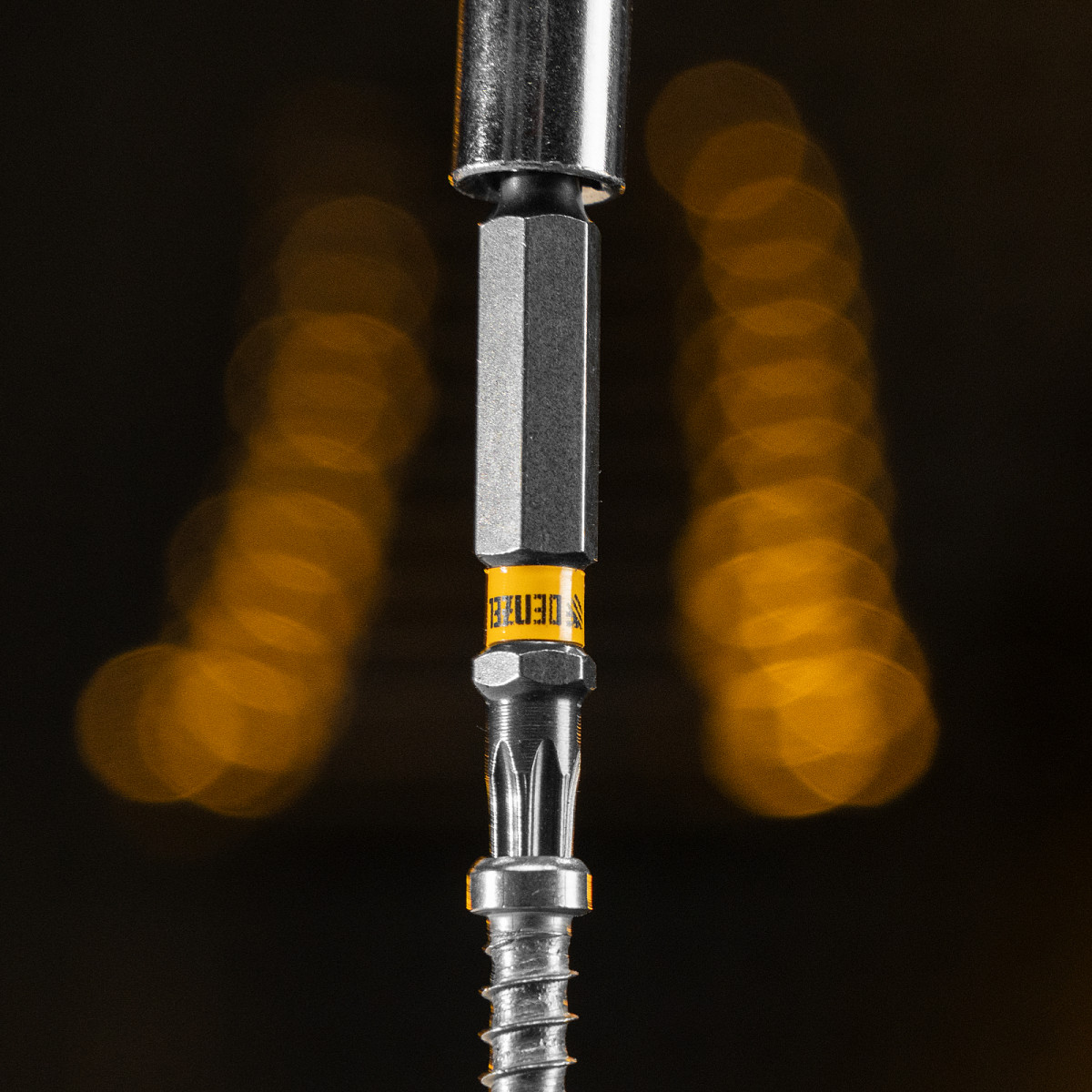 • Каждая бита защищена от подделок — об этом свидетельствует цветное кольцо с логотипом ТМ Denzel.
