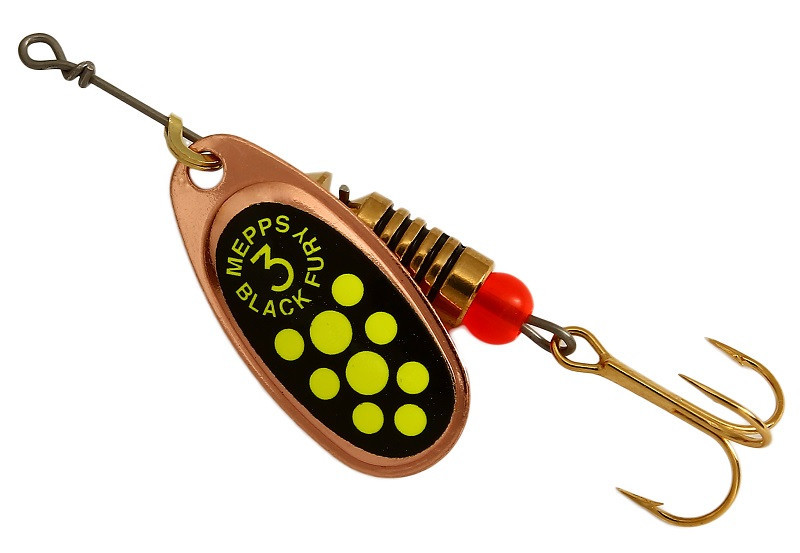 MEPPS предлагает COMET BLACK FURY, как одну из самых уловистых форелевых блесен. Тем не менее, по опыту российских рыболовов, эта разновидность COMET не только подходит для ловли большинства видов рыб, но и в целом ряде случаев не имеет себе равных. Дословно BLACK FURY переводится, как «черная бешеная» или «суматошная чернушка». Все разновидности оснащаются лепестками серебряного, золотого, медного и черного цветов. Между собой они различаются по окраске точек на черном фоне наклеек, расположенных с внешней стороны лепестков.При вращении лепестка, благодаря цветным точкам наклеек и ее черной подложке, приманка напоминает крупное насекомое. Поскольку блесны оснащаются лепестками различных цветов, то всегда есть возможность выбора наиболее удачного сочетания. В одном случае, предпочтительней окажется яркая окраска, контрастирующая с окружающим фоном, в другом — «покровительственная», т.е. маскирующая (такой вариант очень эффективен при охоте за осторожной рыбой).