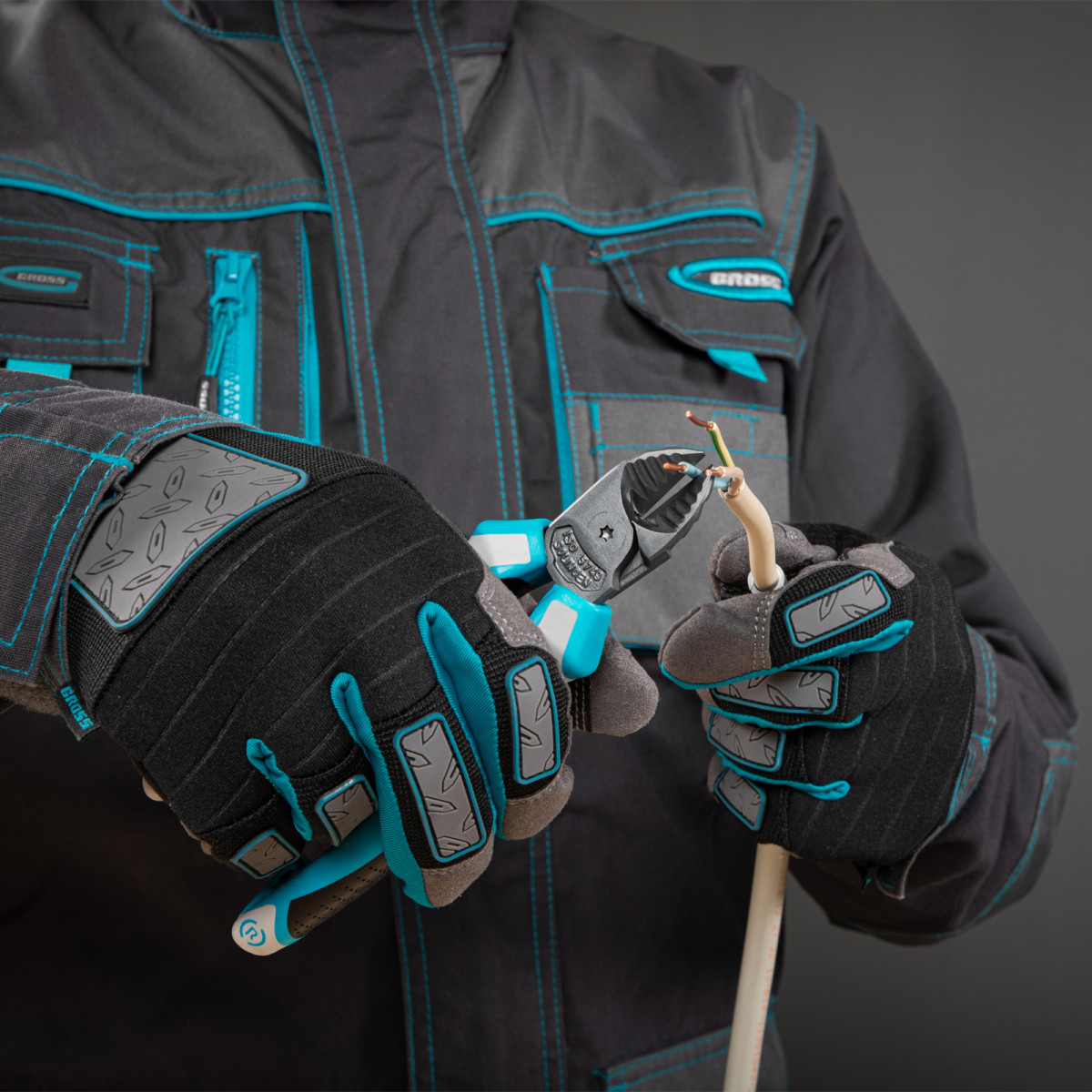 Бокорезы Gross 17571 длиной 160 мм, с трехкомпонентными рукоятками, предназначены для разрезания кабелей из алюминия и меди, проволоки, стяжек при проведении слесарно-монтажных работ. Конструкция шарнира, смещенного к режущим кромкам, позволяет сэкономить 20% усилий при решении поставленных задач.