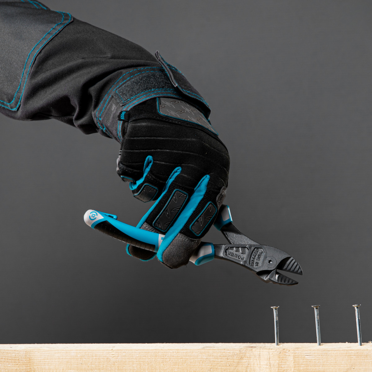 Усиленные бокорезы Gross 17584 длиной 180 мм, с трехкомпонентными рукоятками, предназначены для разрезания кабелей, проводов, проволоки, рояльных струн и т.д. Способны перекусывать не только алюминий, медь, пластмассу, но и более жесткие детали из стали диаметром до 3,7 мм. Встроенный рычажный механизм и смещенный непосредственно к режущим кромкам шарнир увеличивают усилие реза на 20%.