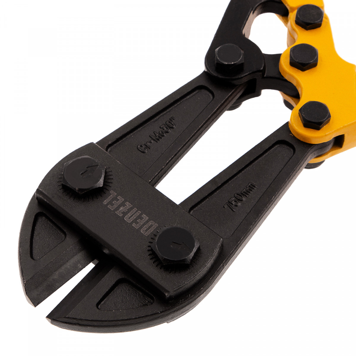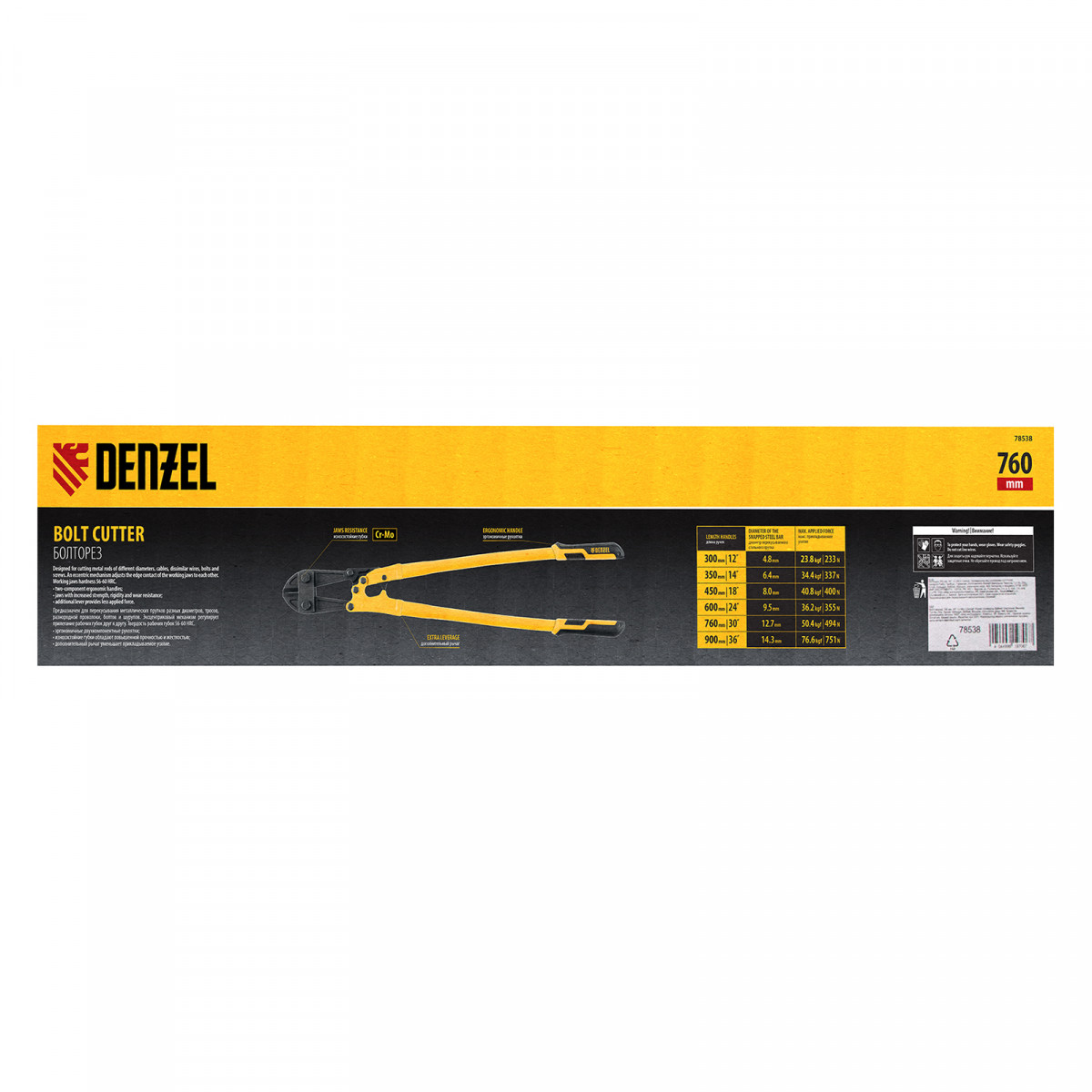 Болторез Denzel 78538 длиной 760 мм (30 дюймов), из стали Cr-Mo, предназначен для перекусывания стальных прутков диаметром 12,7 мм, болтов и шурупов, тросов, разнородной проволоки.