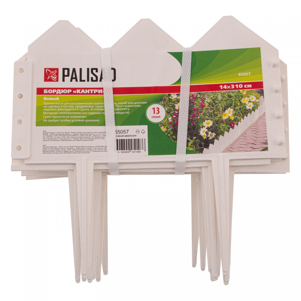 Белый бордюр Palisad «Кантри» 65057 размером 14 х 310 см служит для зонирования территории. В комплект входит 13 секций, с помощью которых можно оформить цветники, грядки и приствольные круги деревьев, а также разграничить дорожки и газоны.