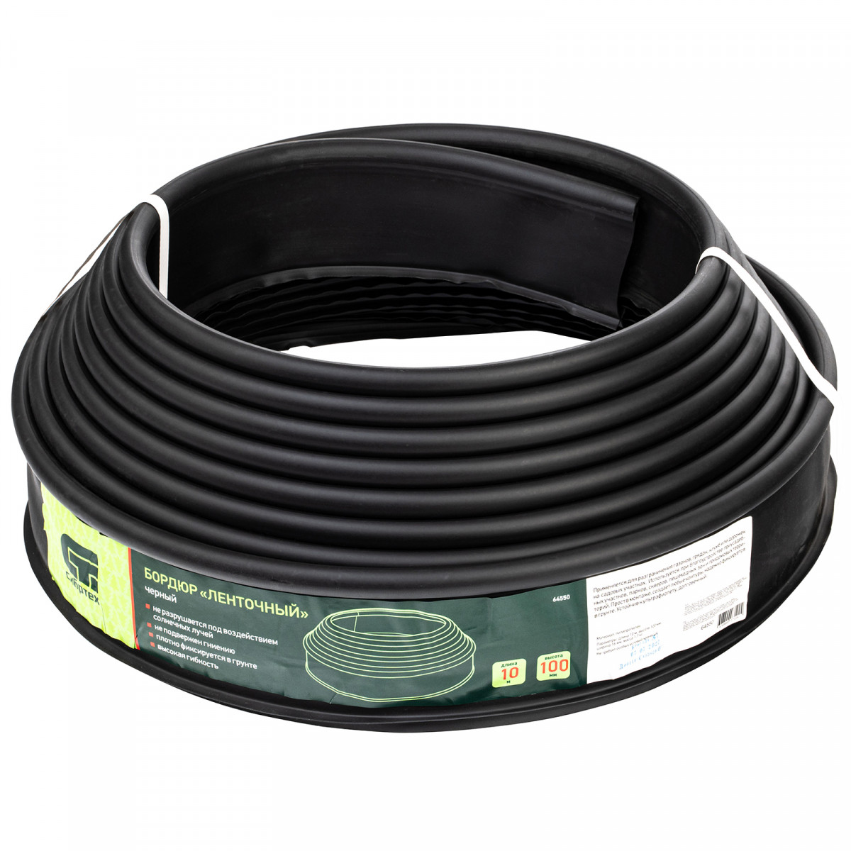 Полиэтиленовый бордюр Сибртех «Лента» 64550 размером 10 х 1000 см, черного цвета, предназначен для оформления отдельных участков озелененных территорий. Гибкому ограждению можно придать любую форму, что позволяет подчеркнуть контуры цветников и грядок, защитить грунтовые дорожки от размывания, обозначить границы приствольных кругов деревьев.