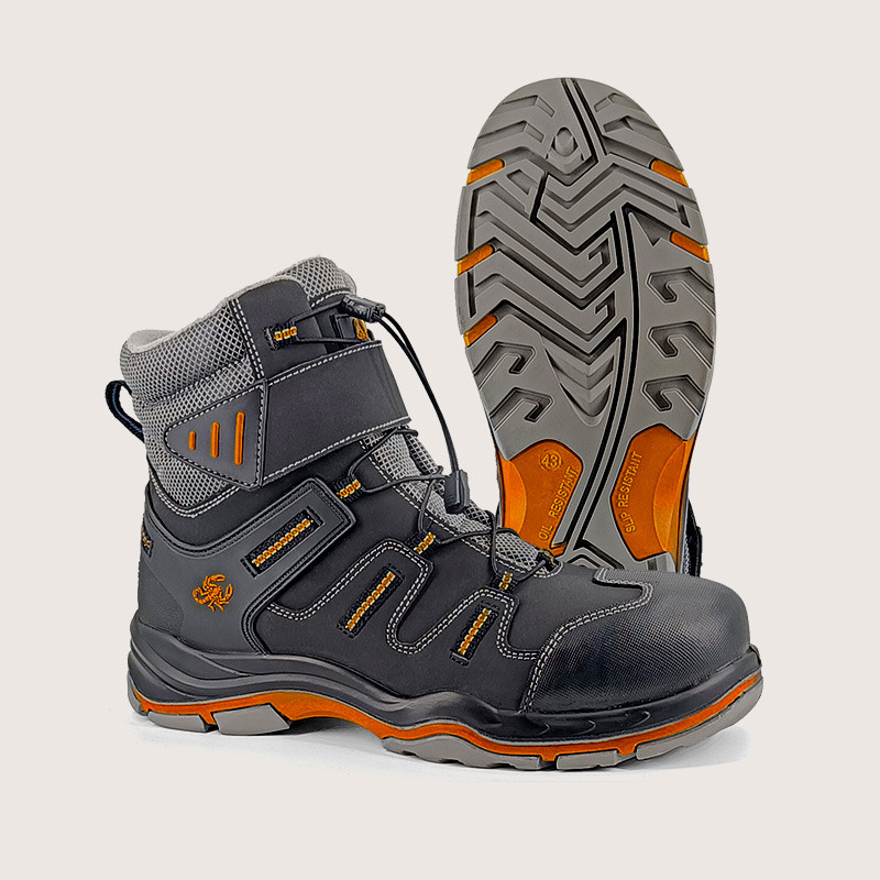 Материал верха обуви – микрофибра с отделкой из современных обувных материалов, что обеспечивает необходимые защитные функции обуви и значительно уменьшает массу. Внутренний поликарбонатный подносок данной модели, выдерживает нагрузку до 200 Дж. Шерстяная подкладка хорошо сохраняет тепло, отличается износостойкостью, достаточно быстро сохнет. Подошва ПУ-Нитрил — маслобензостойкая (МБС), устойчивая к воздействию агрессивной среды – масел, нефтепродуктов, изготовлена из износостойкой, термостойкой (+300°С при кратковременном (60 с) контакте с нагретыми поверхностями) резины на основе нитрильного каучука. Применяемый для литья подошвы нитрил обладает высокой эластичностью и гибкостью. Глухой клапан исключает попадание внутрь влаги, пыли и мелких предметов. Объемная колодка специальной конструкции дает возможность работать целый день, не испытывая дискомфорта и усталости. Глубина протектора 4,5