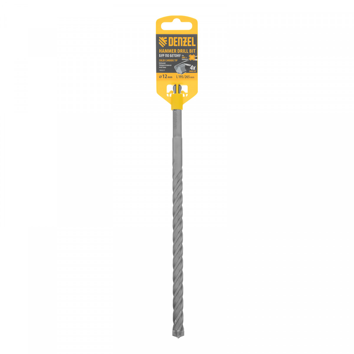 Бур по бетону, цельная крестовая пластина, 12x265 мм, SDS PLUS Denzel