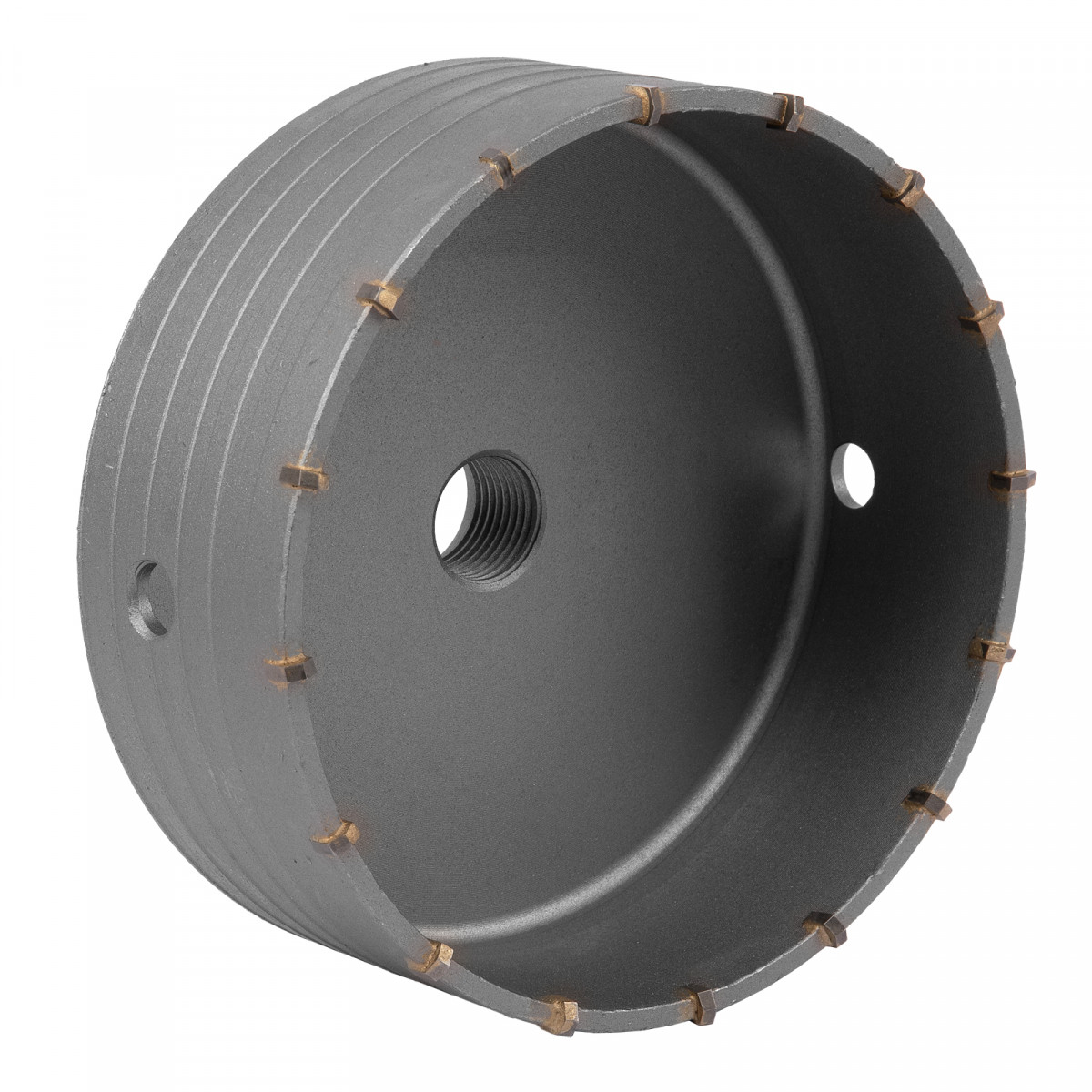Буровая коронка Matrix 70396 с посадкой M22, диаметром 150 мм, рассчитана на сверление отверстий в бетоне, кирпиче, граните, природном и искусственном камне. Устанавливается на ударные дрели или перфораторы с патронами под хвостовик SDS-Plus или SDS-Max. Коронка позволяет получить большие отверстия, поэтому пригодится для монтажа розеток, выключателей и прокладки труб.