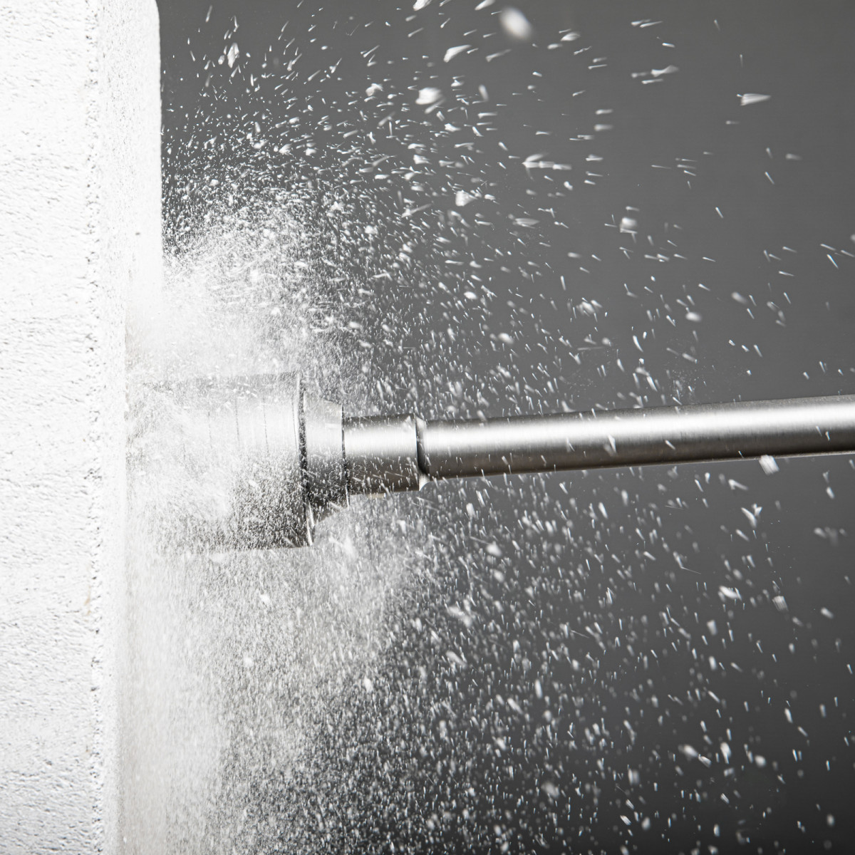 - Эффективность — спиральная канавка на корпусе обеспечивает улучшенный отвод продуктов сверления, что снижает нагрузку на перфоратор и повышает скорость работы.