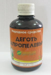 Сапропелевый деготь является продуктом перегонки сапропеля при температуре 100-500°С и представляет собой фенолсодержащую темную маслянистую жидкость с относительной плотностью 0,925-0,950 со специфическим запахом. Хорошо смешивается с эфиром, хлороформом, растворяется в растворах едких щелочей.