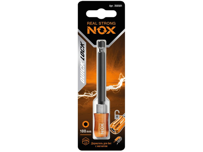 Магнитный держатель NOX QUICK LOСK предназначен для надежной фиксации и быстрой замены бит и другой оснастки со стандартным шестигранным хвостовиком ¼ HEX.Оснащён мощным неодимовым магнитом, облегчает работу и ускоряет процесс замены бит.Шестигранный хвостовик ¼ HEX исключает проскальзывание оснастки в патроне электроинструмента.Подходит для работы электродрелью со стандартным трёхкулачковым зажимным патроном и шуруповёртом с шестигранным патроном для быстрой смены насадки.