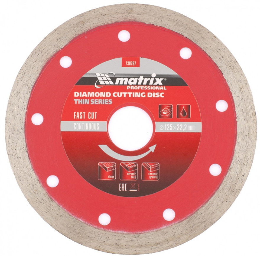 Диск 125*22,2 мм алмазный мокрая резка отрезной сплошной тонкий "MATRIX"