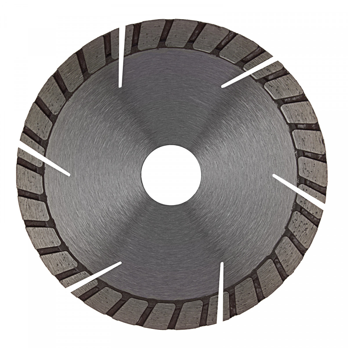 - Эффективная работа — благодаря турбо-сегментной форме диск быстро режет материалы, в т.ч. армированный бетон, водяное охлаждение не требуется.
