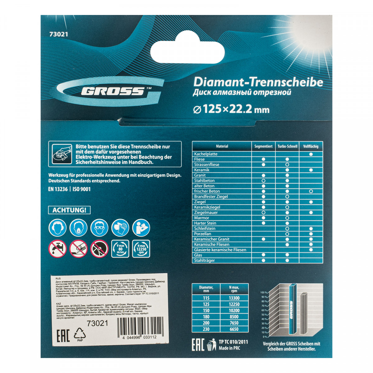 Диск алмазный, 125 х 22.2 мм, турбо-сегментный, сухая резка Gross