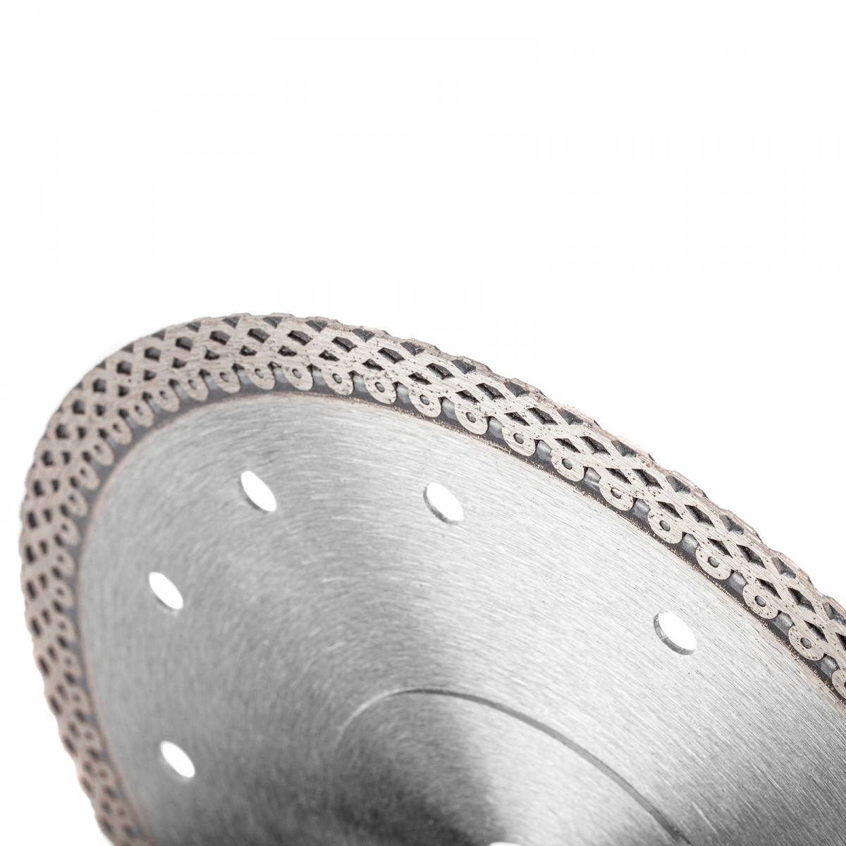 - Высокая производительность — широкая режущая часть (10 мм) содержит алмазы размером 40-50 мкм в большой концентрации, толщина алмазного слоя составляет 1,8 мм, что увеличивает скорость реза.