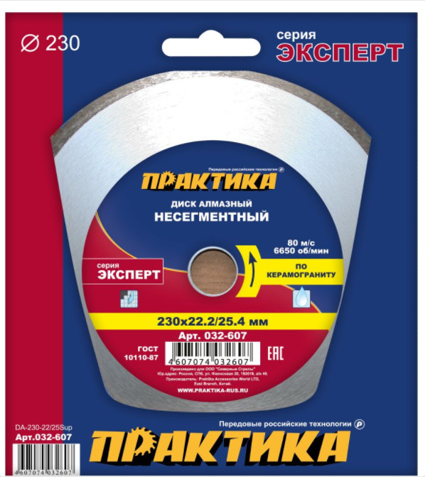 Серия «Эксперт». Тип 1A1R. Сегмент 7 мм. ГОСТ 10110-87. Специализированные тонкие диски для профессионального применения по керамическому граниту, плитке, различным изделиям из керамики. Для настольных пил и ручного инструмента. Обеспечивает идеальную чистоту кромок. Рекомендован для большого объема работ. Использовать охлаждение водой.