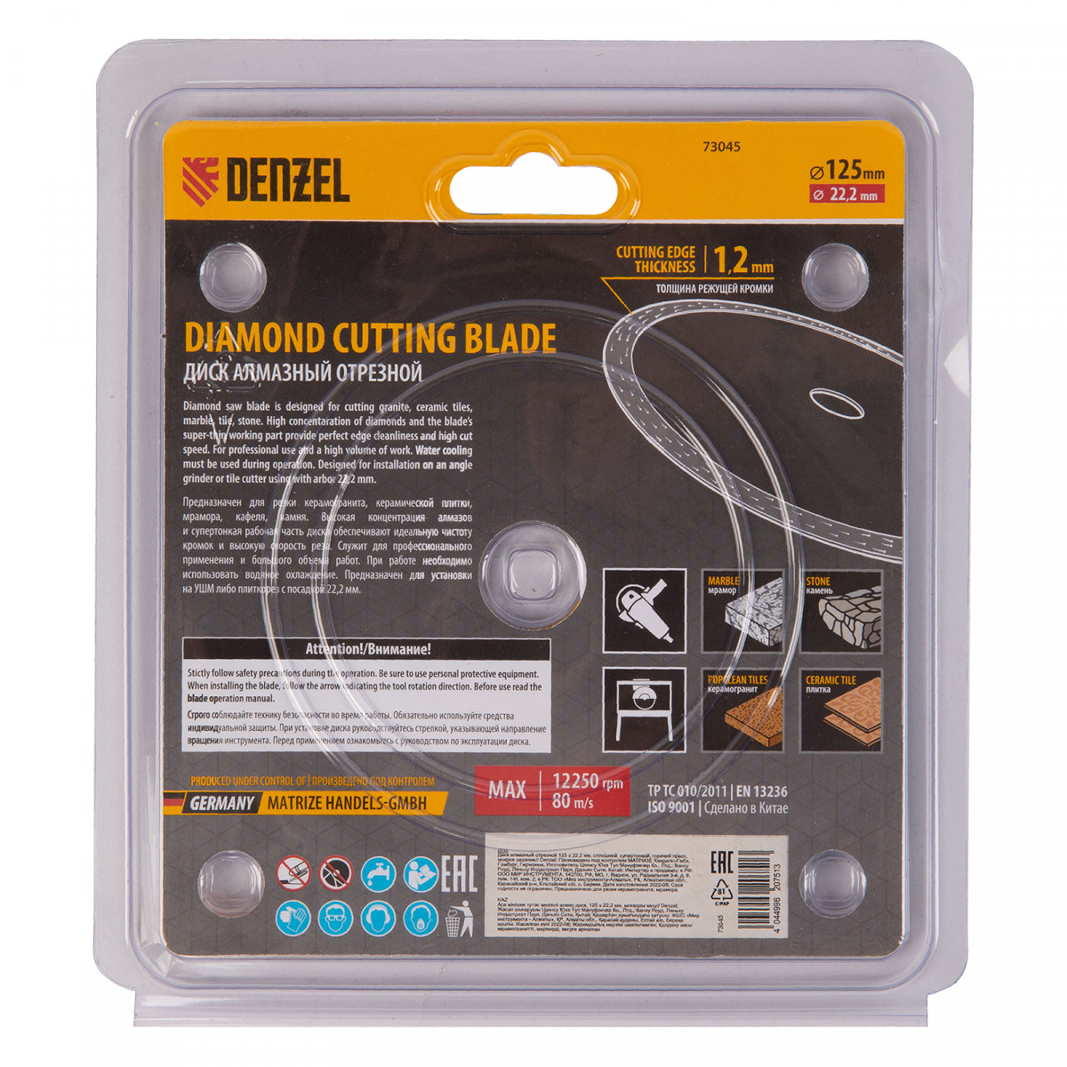 Алмазный диск ТМ Denzel "Сплошной" арт 73045, ф125 х 22,2 мм, предназначен для мокрого резания мрамора, керамогранита и керамическую плитки, камня. Устанавливается на УШМ (болгарку) или плиткорез с посадочным диаметром 22,2 мм. Высокая концентрация алмазов и супертонкая рабочая часть диска обеспечивает идеальную частоту кромок и высокую скорость реза.Диск произведен по технологии горячего прессования с увеличенной шириной режущей кромки (10мм) подходит для профессионального использования и больших объемов работ.
