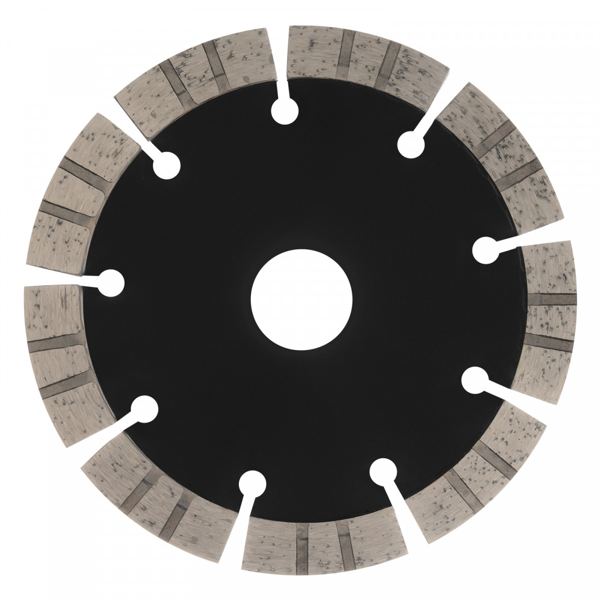 Алмазный отрезной диск Denzel 731010 диаметром 125 x 22,2 мм, с сегментной рабочей частью и слоем сверхтвердых алмазов HWD92, предназначен для сухого резания бетона, камня, кирпича, гранита. Используется с углошлифовальной машиной (УШМ) или штроборезом, поддерживающими частоту вращения 12250 об/мин.