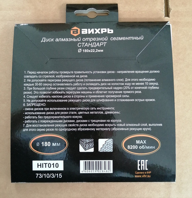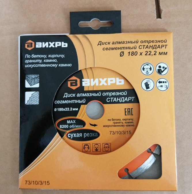 Диск алмазный отрезной сегментный СТАНДАРТ, 180 х 22,2 мм, сухая резка Вихрь - это алмазный отрезной диск, который используется совместно с угловыми шлифмашинами (болгарками) для сухой резки гранитных, бетонных, кирпичных и каменных изделий.