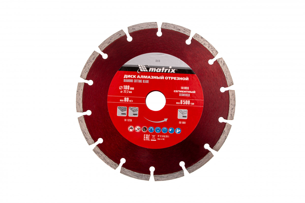 Диск алмазный, отрезной сегментный, 180 х 22.2 мм, сухая резка Matrix Professional