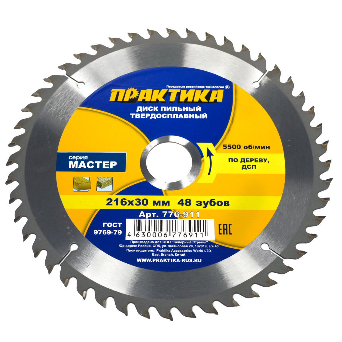 Диск пильный 216*30 мм 48 зубьев по дереву, ДСП "Практика"