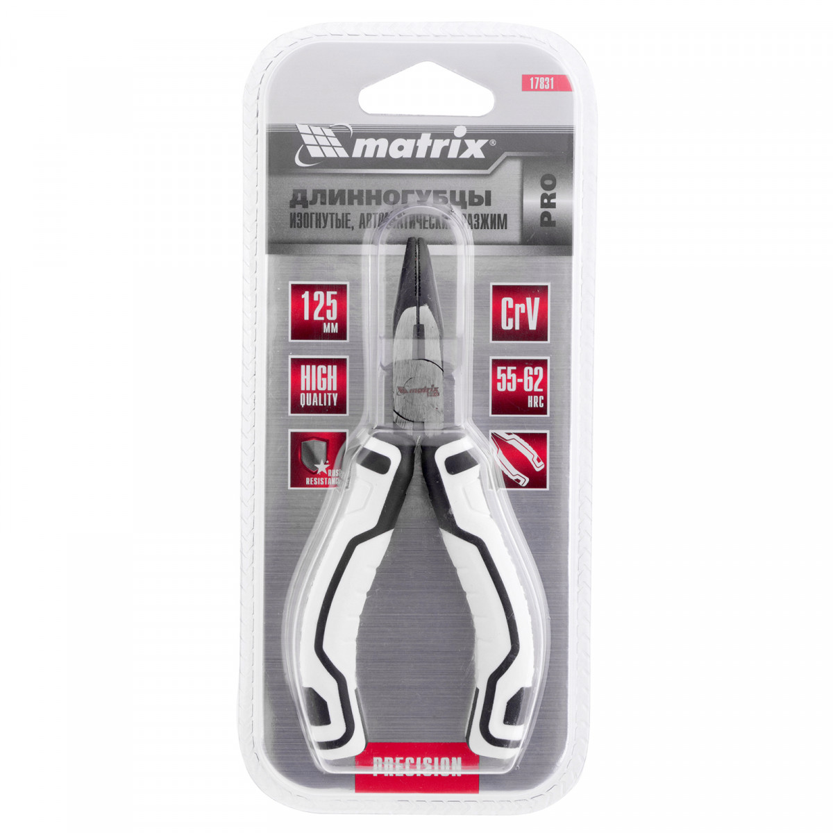 Длинногубцы Mini, 125 мм, изогнутые, авторазжим, Pro Matrix