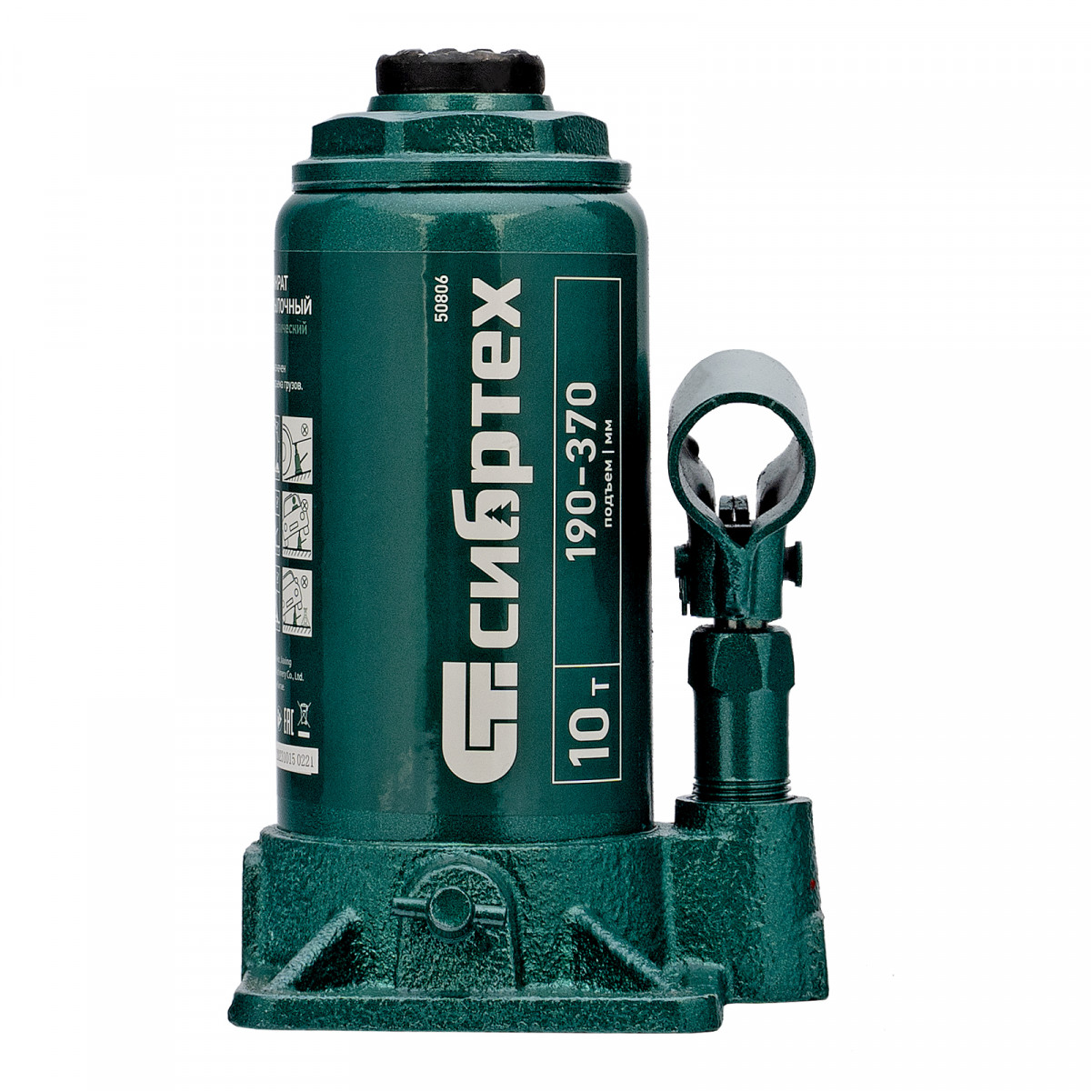 Домкрат гидравлический бутылочный, 10 т, 190-370 мм Сибртех