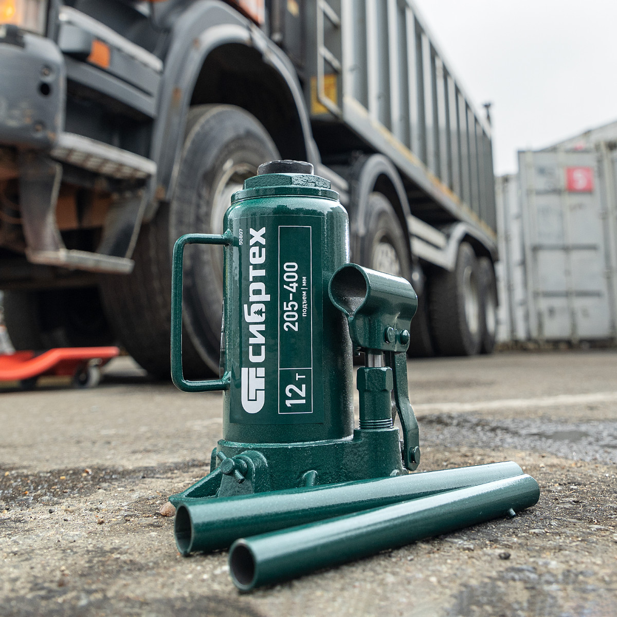 Домкрат гидравлический бутылочный Сибртех 50807 предназначен для подъема грузов массой до 12 т на высоту от 205 до 400 мм. Не требует больших усилий от пользователя и значительно облегчает рабочий процесс. Домкрат будет полезен при проведении техобслуживания машины в автосервисе или гараже.