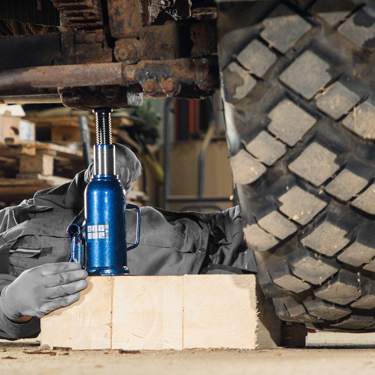 - Безопасная эксплуатация — благодаря предохранительному клапану домкрат не поднимает грузы тяжелее 12 т.