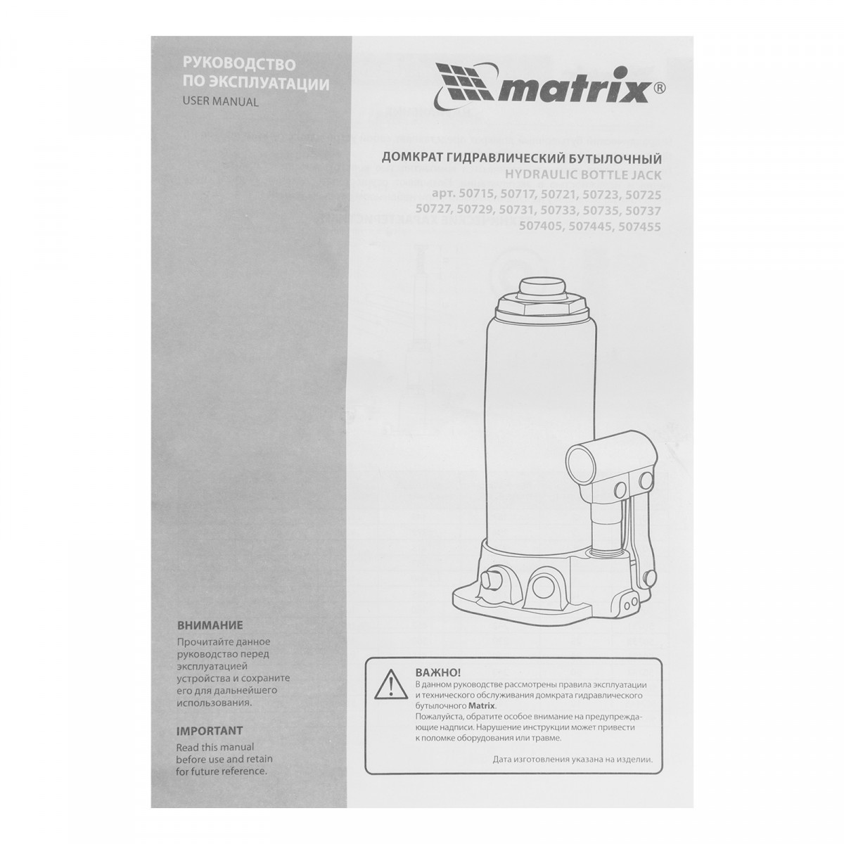 Домкрат гидравлический бутылочный, 15 т, высота подъема 230-460 мм Matrix