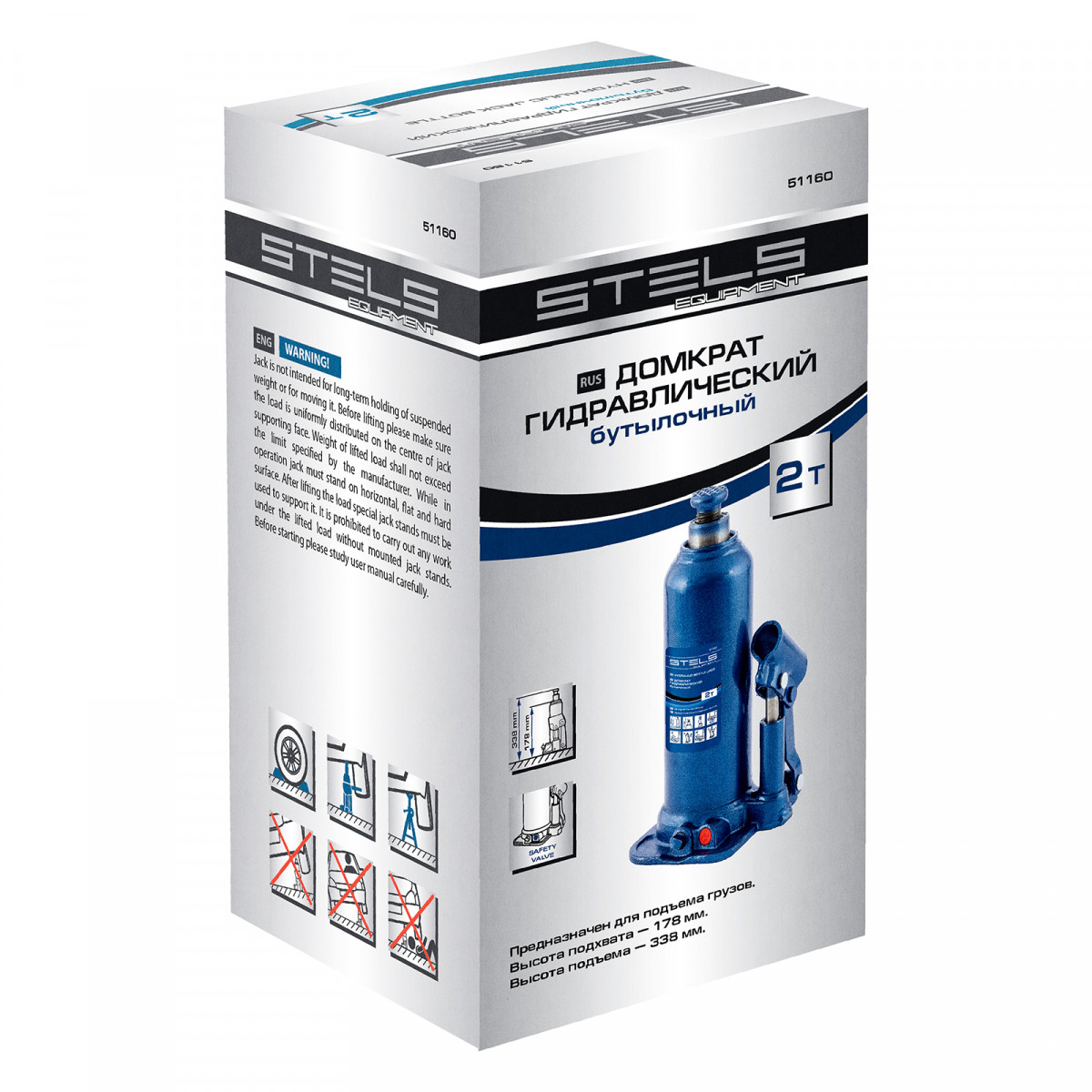 Гидравлический бутылочный домкрат Stels 51160 применяется для быстрого поднятия грузов весом до 2 т на высоту 178-338 мм. Оптимален для автомобилей с большим клиренсом. Домкрат будет полезен автолюбителям и профессионалам для ремонта транспортного средства.