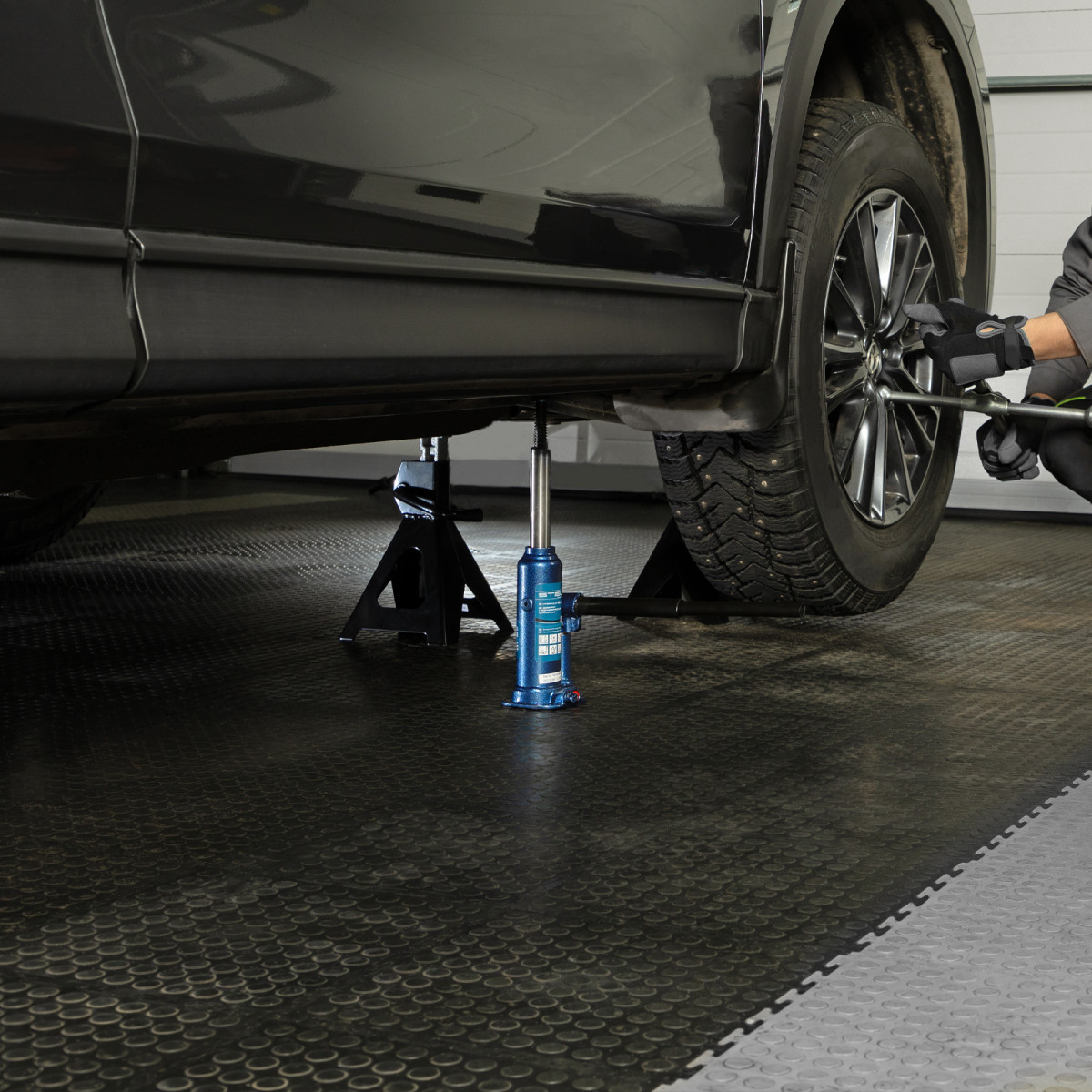• Безопасная эксплуатация — благодаря предохранительному клапану домкрат не поднимает грузы тяжелее 2000 кг.