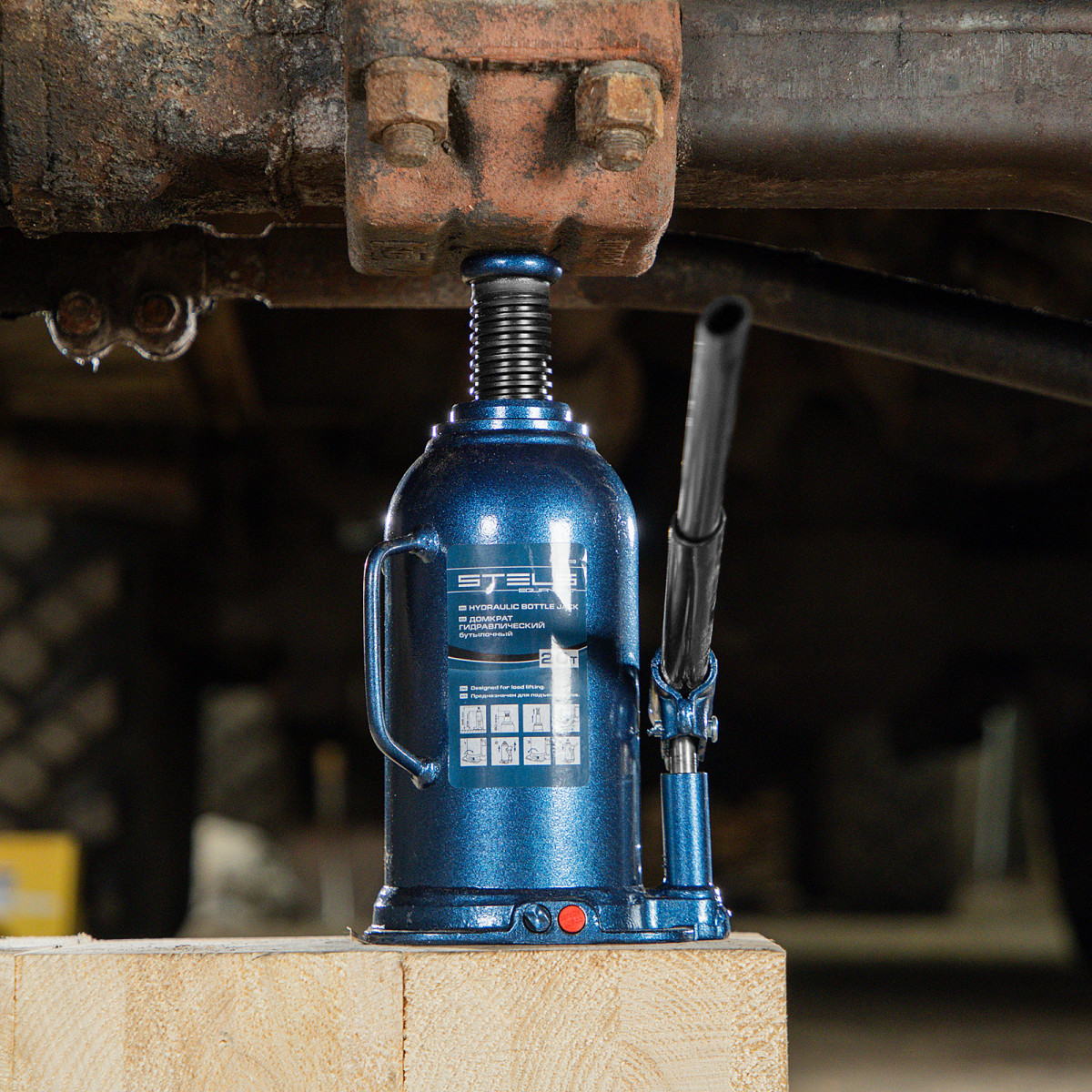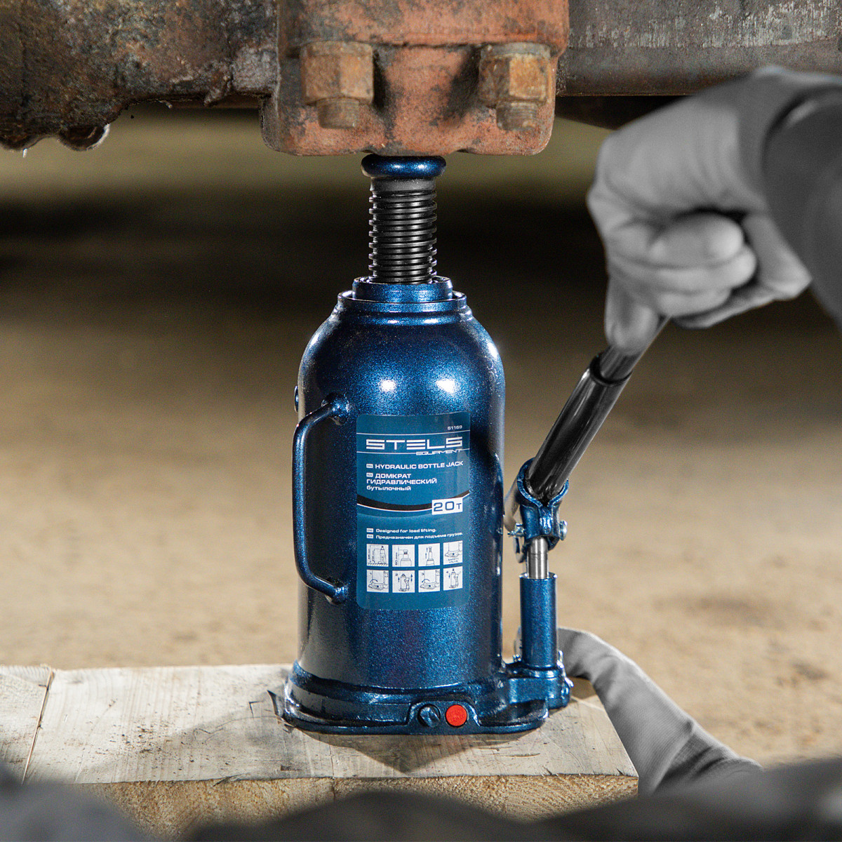 • Безопасная эксплуатация — благодаря предохранительному клапану домкрат не поднимает грузы тяжелее 20 т.