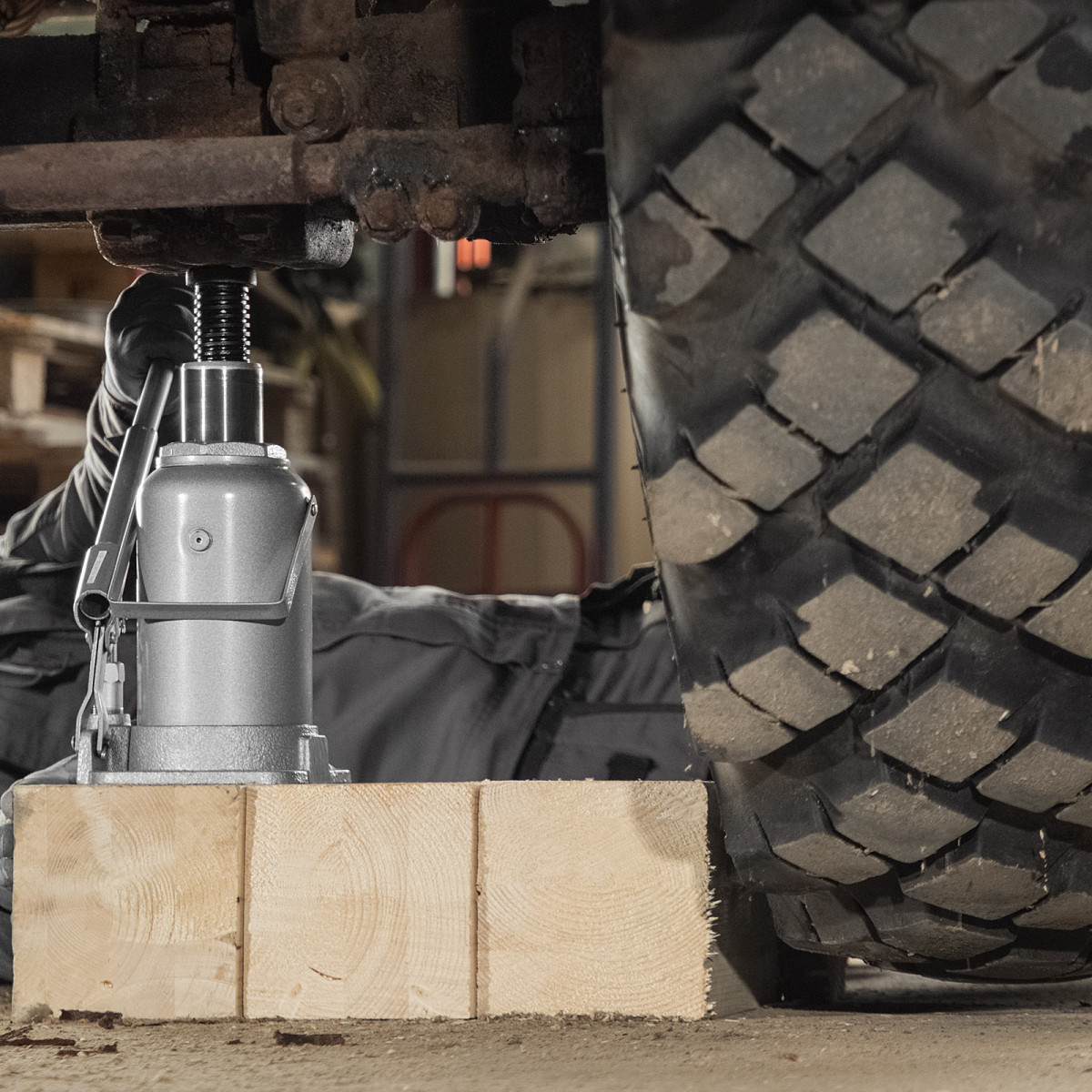 - Защита от перегрузок — благодаря клапану безопасности домкрат не поднимает грузы массой более 20 т.