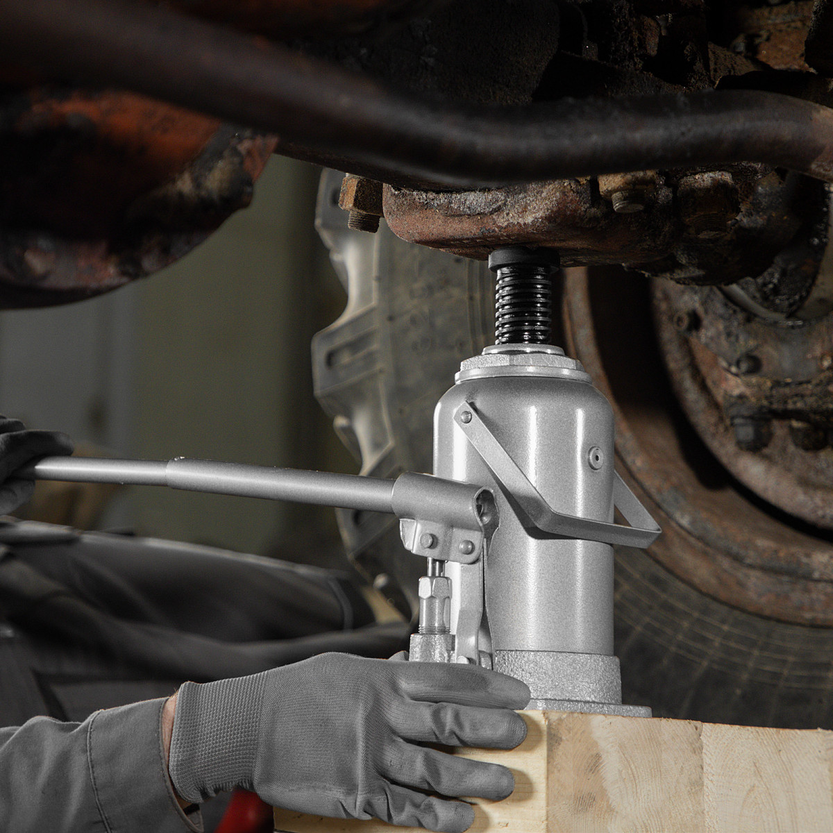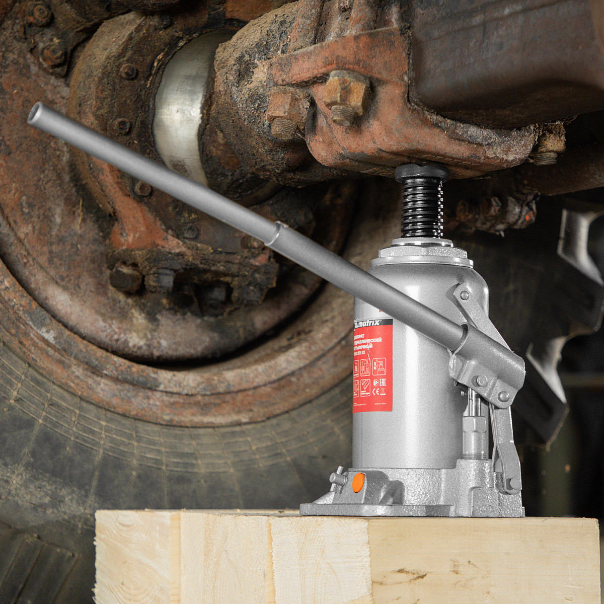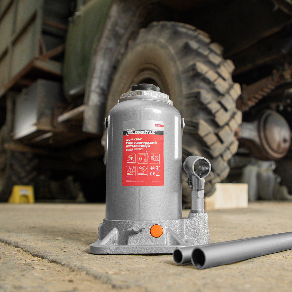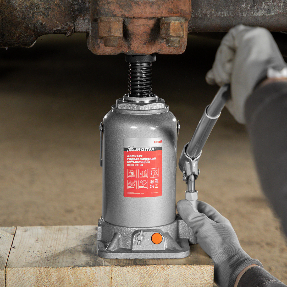 Гидравлический бутылочный домкрат Matrix 50778 поднимает грузы весом до 20 т на высоту 244-449 мм и может использоваться в гараже, на станции ТО или строительной площадке. Встроенный магнитный уловитель собирает металлическую стружку, образующуюся в процессе работы, что защищает домкрат от преждевременного износа.