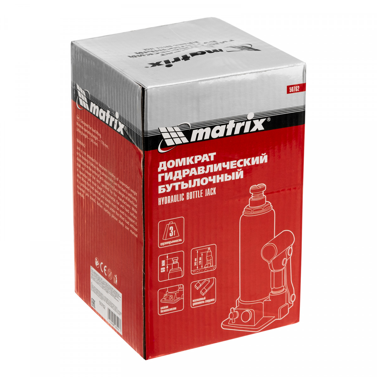 Домкрат гидравлический бутылочный, 3 т, h подъема 178-343 мм Matrix