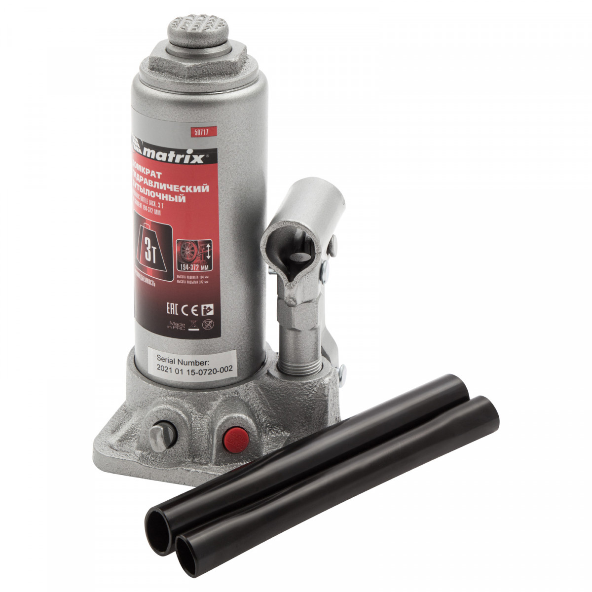 Домкрат гидравлический бутылочный Matrix 50717 используется для поднятия грузов массой до 3 т на высоту 194-372 мм. Подходит для автомобилей с высоким клиренсом. Домкрат будет полезен автолюбителям в гараже и дороге, а также сотрудникам СТО.