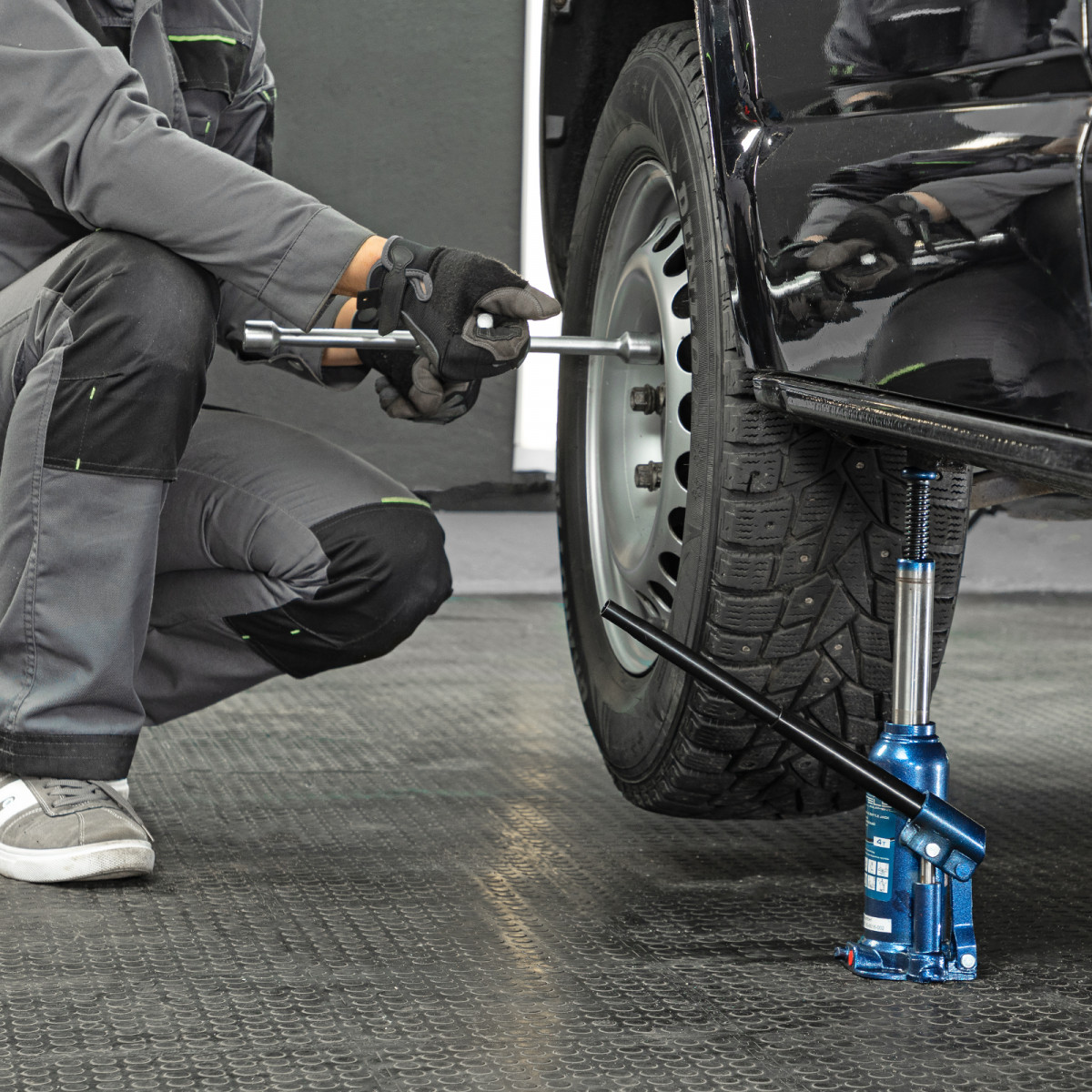 • Безопасная эксплуатация — благодаря предохранительному клапану домкрат не поднимает грузы тяжелее 4000 кг.