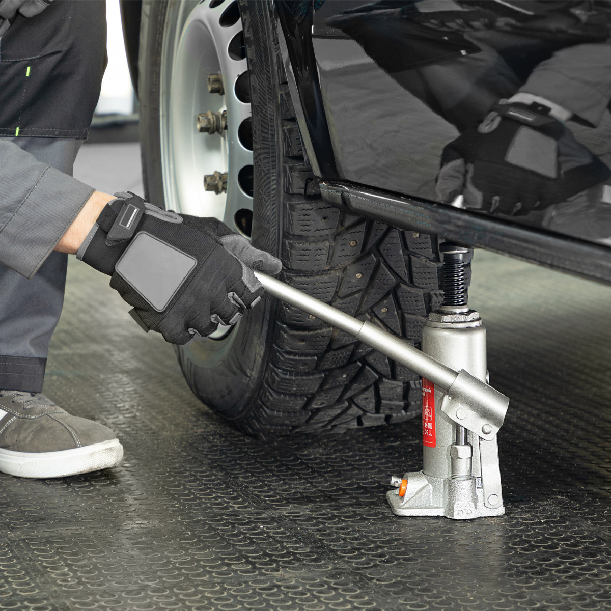 - Удобная транспортировка — домкрат комплектуется прочным пластиковым кейсом.